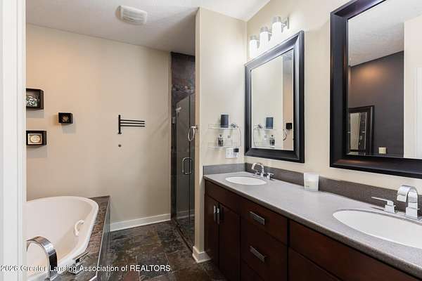- Cathedral Ceiling(s), Ceiling Fan(s), Double Vanity, Eat-In Kitchen, Open Floorplan, Recessed Lighting, Soaking Tub, Tray Ceiling(s), Walk-In Closet(s)