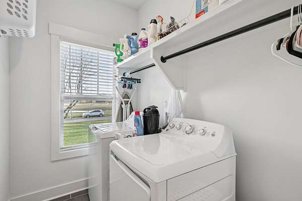 - Dishwasher, Disposal, Dryer, Electric Oven, Electric Range, Freezer, Microwave, Refrigerator, Stainless Steel Appliance(s), Washer