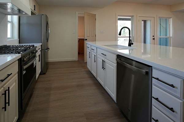 The spacious 3,400? sq ft home sits on a pier and beam foundation and features a thoughtful layout designed for comfort and convenience. The first floor boasts the primary bedroom suite complete with dual sinks, two closets, and a walk-in shower. The open-concept great room seamlessly connects the kitchen, dining, and living areas, perfect for family life or entertaining guests. A large laundry room with sink and cabinetry, full bathroom (shower only), and a stylish butler's pantry complete the downstairs.