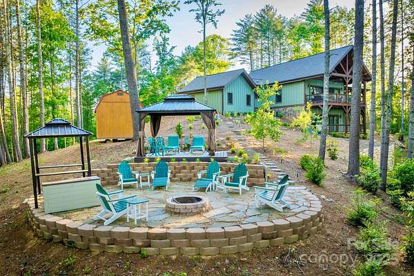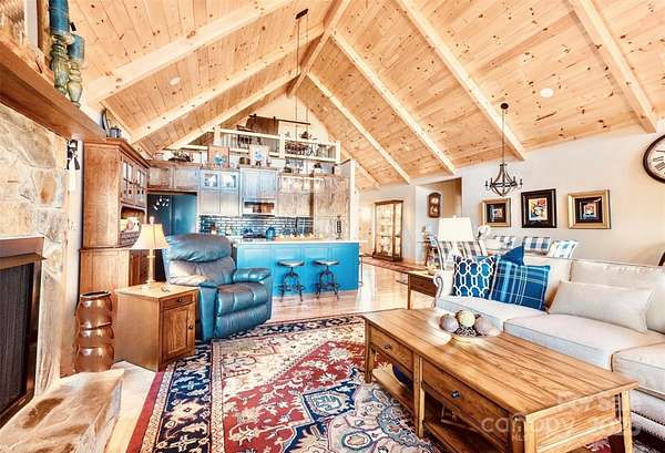 Luxury riverfront living awaits on Johns River! Vaulted wood ceilings, massive beams, striking stone fireplaces, and walls of windows enhance the rustic charm of this 3 BR 3 BA home, built in 2022. Nestled in the Blue Ridge Mountains, with picturesque views and your own 1,210 ft of the pristine Johns River. Open floor-plan, wrap around porches, decks and walk-out basement. Ramble around your 10+ acres, surrounded by nature, including 2+ acres, mostly cleared and level, perfect for pasture or gardens. The Coves Mountain River Club, is a 3200-acre gated community with an array of amenities: 6,000 sq ft post & beam clubhouse, pool, fitness center, private trails, 2 equestrian centers, pickle-ball, putting green, dog park, vineyard, community garden, and more. 5 miles of Johns River, on site. 30+ clubs to join, Pisgah National Forest is across the river. 1.5 hour to Charlotte or Asheville. Minutes to Blowing Rock, Lenoir, Hickory, and the Blue Ridge Pkwy.