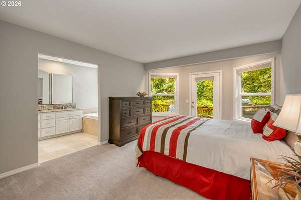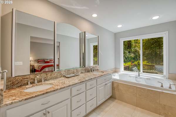- High Ceilings, Jetted Tub, Laundry, Soaking Tub, Tile Floor, Wallto Wall Carpet