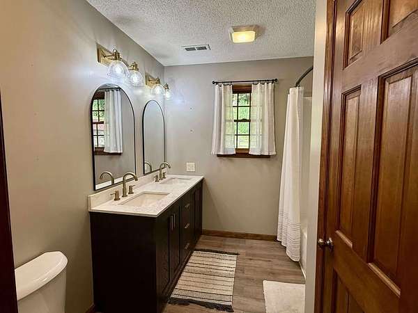 This charming 2-story, 3-bedroom, 2.5-bath home sits on a beautiful private lot, offering the perfect mix of comfort and seclusion. Featuring newly renovated bathrooms and a versatile den that can easily be used as a 4th bedroom, this home provides plenty of space for your family's needs. Enjoy relaxing on the spacious front porch or exploring the peaceful, expansive land. The home also boasts a durable metal roof, adding both style and longevity. Acerage and lot size is estimated by the seller. Buyers are responsible for verifying property lines at their cost.