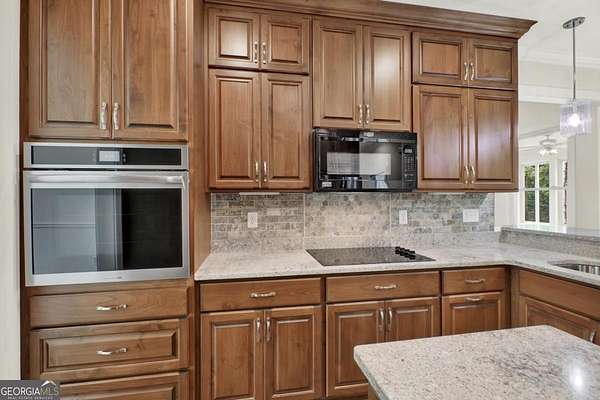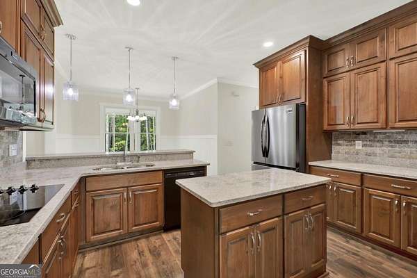 Priced for instant equity.. below appraisal! Stunning custom-built retreat nestled on 1.88 peaceful, wooded acres in one of Canton's most desirable and convienent areas. This brand new 4-bedroom, 2.5-bath estate boasts approximately 3,330 sq ft of thoughtfully designed living space, with a full daylight basement featuring 9' ceilings and stubbed for a bathroom-offering limitless potential for expansion. Step inside to discover a bright, open layout filled with luxurious finishes and elegant details throughout. The inviting family room showcases 10' ceilings, a cozy rock fireplace with gas logs and starter, accenting bookcases, and a charming shiplap accent wall. Adjacent to the family room is a gourmet chef's kitchen, complete with gleaming quartz countertops, a spacious island and breakfast bar, custom soft-close cabinetry, a convection oven, a large pantry, and a double stainless steel sink-perfect for entertaining and everyday living. The sun-drenched breakfast nook features stylish beadboard and chair rail, while the formal dining room, sunroom, and versatile bonus room provide ample space for hosting guests or relaxing in comfort. The luxurious owner's suite offers a tray ceiling, a cozy sitting area, and walk-in closet, with a spa-like en-suite bathroom that includes a garden tub, rain glass shower, separate toliet room, and his and hers vanities. Each of the spacious bedrooms offers walk-in custom closets, and upgraded flooring includes plush carpet with premium padding. The formal areas are a durable luxury vinyl plank flooring in high-traffic spaces such as the kitchen, family room, foyer, laundry, and breakfast areas. Ceiling fans in all bedrooms and main living spaces add comfort and energy efficiency. The sunroom and 4th bedroom/bonus room are outfitted with their own remote-controlled split-unit HVAC systems, and there is ample pull-down attic storage accessible from the hallway and bonus room. The oversized 3-car garage with remote-access overhead doors and an electric charging station plus a drive-under basement entry provides ultimate convenience, along with an extra-large patio ideal for outdoor living. Energy efficiency and safety are top priorities in this home, featuring dual fuel HVAC (electric heat pump with propane backup), electric water heater, double-pane vinyl windows, and a metal roof. Built with 2x6 exterior walls, it includes foam and fiberglass insulation throughout, with R-21 ceilings/walls and R-19 floors. A poured wall foundation, storm/safe room with steal door and pre-wired security system with exterior cameras and floodlights on all four corners provide peace of mind. The home is wired for a whole-house generator and located in the highly rated New Cherokee High School district. Utility services include GA Power, Waleska Water, and a septic system. Exterior finishes include an all-brick front with Hardy Plank siding on sides and rear, combining classic curb appeal with low-maintenance durability. Included in the sale are top-of-the-line appliances: a Frigidaire stainless steel wall oven (Gallery Series), Frigidaire smooth cooktop, Bosch quiet dishwasher, and Maytag over-the-range microwave. This gorgeous, move-in ready home offers a rare combination of style, comfort, space, and privacy-perfect for anyone seeking a quiet escape with easy access to local amenities.