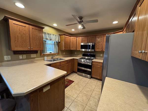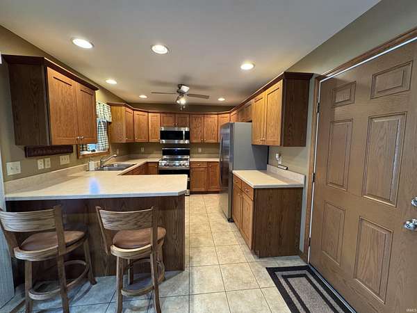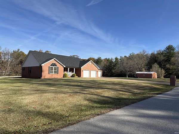 Welcome to country living at its finest! Check out this beautiful brick home with attached 3 car garage sitting on 4 acres! Enjoy the screened in back patio overlooking the lake. The kitchen offers stainless steel appliances that stay with the home - don't miss that gas double oven! This home offers three bedrooms and two full bathrooms, with bathrooms offering soft close drawers. Custom-made blinds are in all windows except kitchen. The washer and dryer are conveniently located on the main floor and stay with the home. The FULL, DRY basement is ready to make your own. A pole barn offers even more storage for those outdoor toys! The back patio area offers space outdoors to relax with a view. The spacious three car garage also offers attic space for ADDITIONAL storage. The private lake and 4 acres offer a serene setting for the next owners!