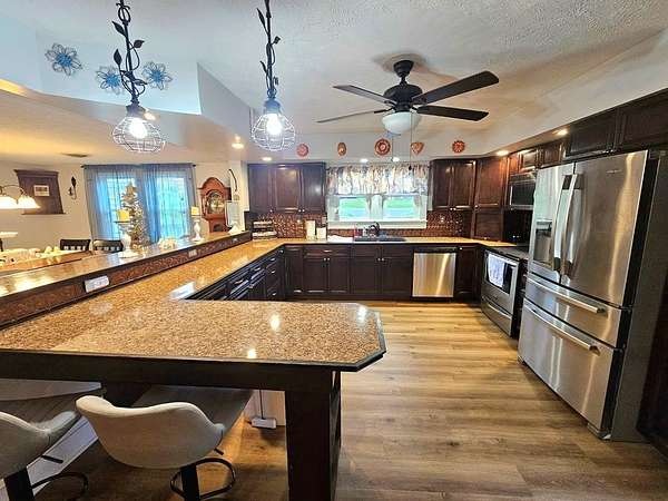 SPACE GALORE INSIDE AND OUT! This sprawling ranch style home offers plenty of room for a growing family. Before you even enter the home, the outdoor space will amaze you! This home is situated on almost 2 acres that's entirely level! Upon entering the home, you will find an open-floor plan showing off the updated kitchen, dining room and large family room. That area is sure to be the place for entertaining family and friends. The home also offers a formal living room, media room, primary suite with ensuite bath, 3 additional spacious bedrooms and another 2 full bathrooms. The home has amazing storage space throughout. The kitchen was updated about 10 years ago, but the floors and dishwasher were replaced in March 2026. Replacement windows 10 years ago. The metal roof is 7 years old. The 5-ton heat pump is 3 years old. The house was originally built in 1951, but in the early 1980's it doubled in size! It still has some original hardwood floors along with updated floor coverings. The part that seals the deal is the partially fenced 2 acres that offers privacy, large garden area, and plenty of room for family gatherings. As a matter of fact, the current owner hosted over 100 attendees for an outdoor wedding last summer! The back deck has 795 sq. ft! The property is just outside the town limits, but still convenient to everything. I'm not sure how much more a person could be looking for, because this one sure does check off a lot of boxes!