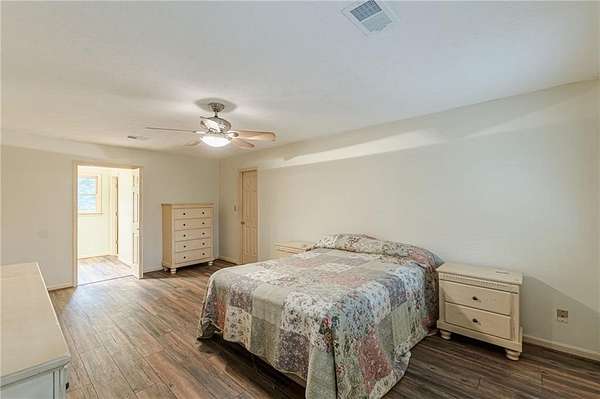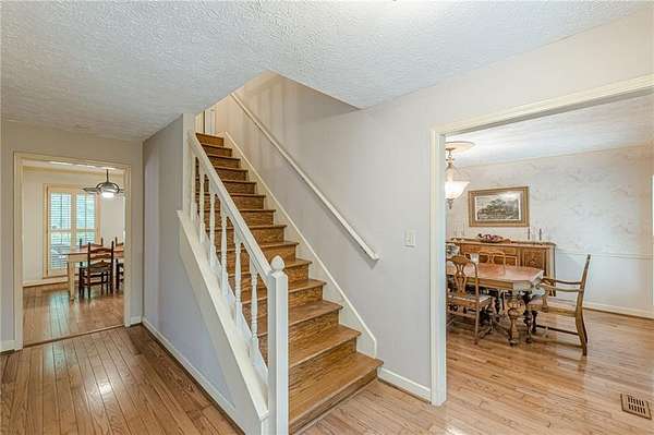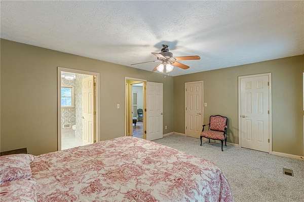 Want ultimate privacy on over 7 acres? Here you go. This beautiful 4 sided brick home sits surrounded by trees. Two primary suites, one up and one down. 4 bedrooms, 4 full bathrooms and a half bath has room for everyone! You will feel you are at home as soon as you arrive. Kitchen has a breakfast bar, breakfast table area overlooking the backyard and a large pantry. There is an amazing, screened porch at the back for the quiet mornings with your coffee and wine at night. This traditional home has beautiful real hardwood floors. Relax in the oversized Family room with a real fireplace. There is also a large formal living room at the front and a large formal dining room complete with custom plantation shutters. The primary suite is off by itself for amazing privacy. Primary bath is sure to please with a jacuzzi tub and separate shower. Upstairs you will find 3 large bedrooms with their very own bathrooms! Wait, there is more. The basement has a movie/theatre room with built in shelves for entertaining. The basement also has another large room with built ins that can be used as another bedroom or home office. There is more storage space than you will need in the rest of this large basement! Outside there is an incredible storage building on another basement! Live the peaceful life, hike in the woods on your own land. This is the one.