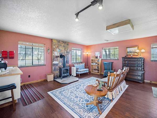 The charming 2,180+- square foot ranch home features three bedrooms, two custom bathrooms, and a beautiful stone fireplace, all updated with thoughtful detail and rustic elegance. Additional living spaces include a cozy guest cottage and a caretaker/guest apartment, perfect for multi-generational living, staff housing, or rental potential.