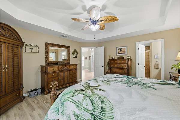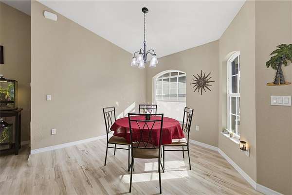 - Cathedral Ceiling(s), Ceiling Fans(s), Eat-In Kitchen, High Ceilings, Living Room/Dining Room Combo, Open Floorplan, Primary Bedroom Main Floor, Solid Surface Counters, Solid Wood Cabinets, Split Bedroom, Tray Ceiling(s), Walk-In Closet(s)
