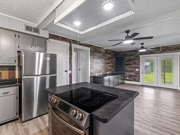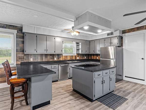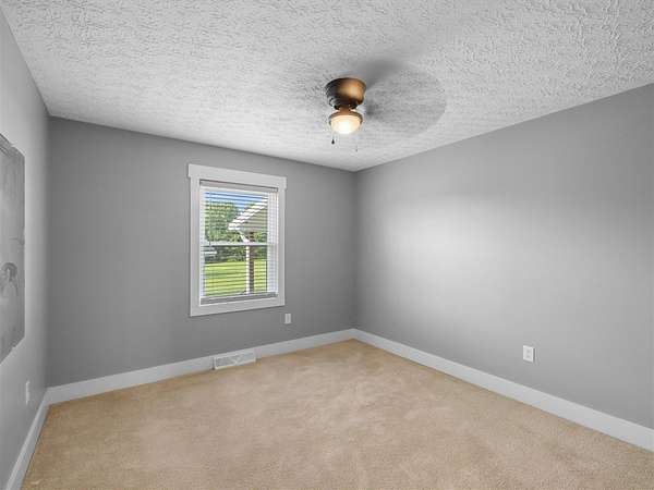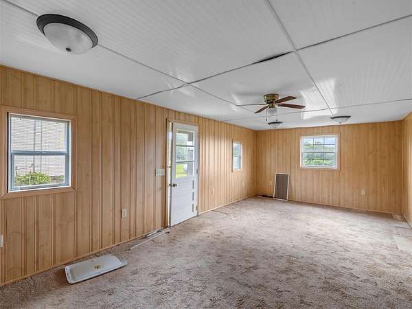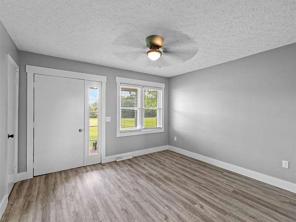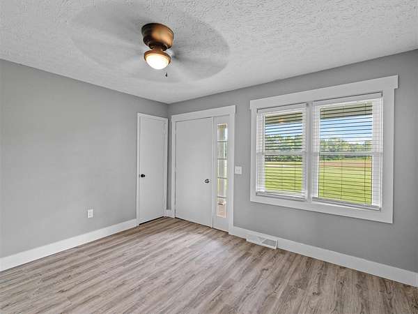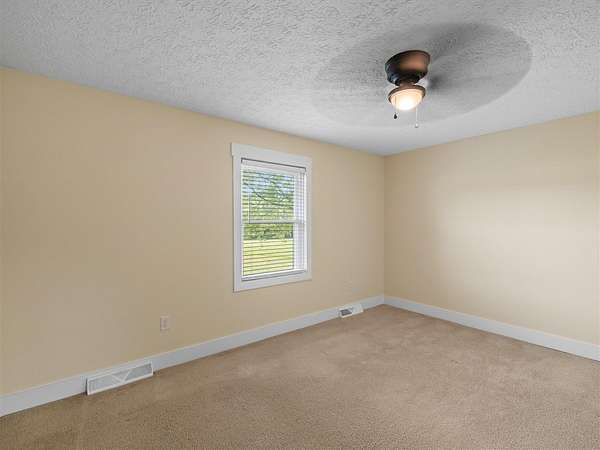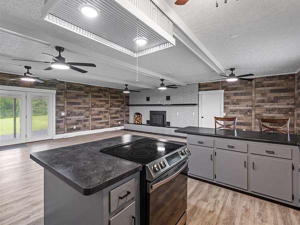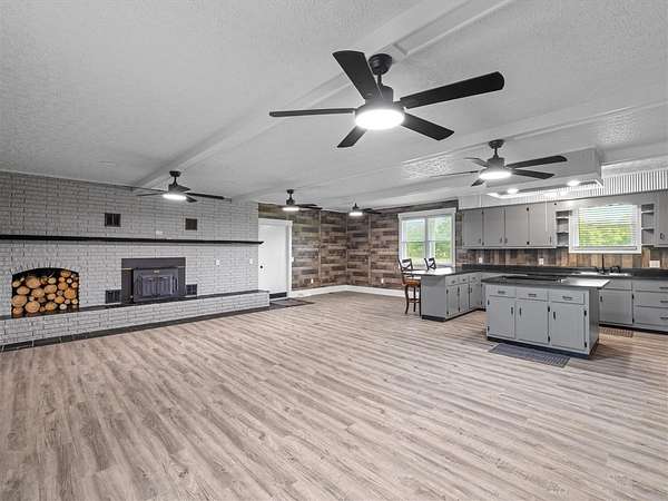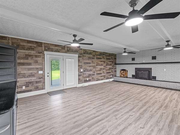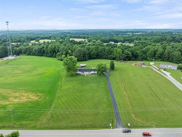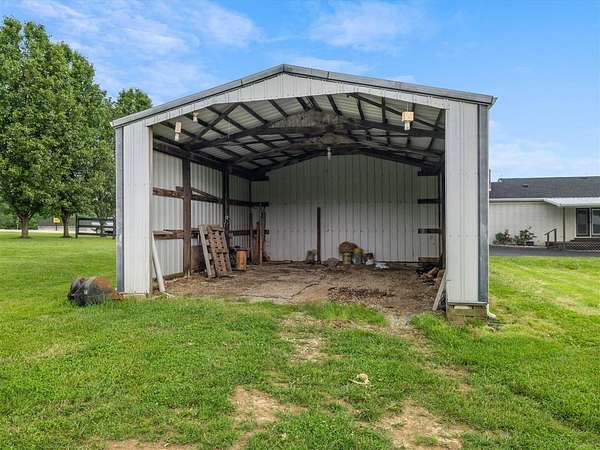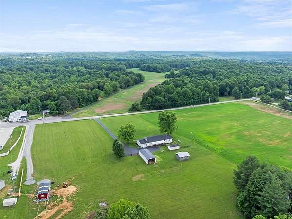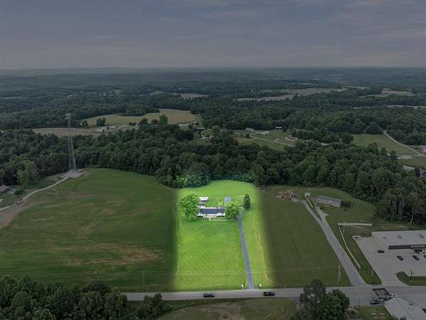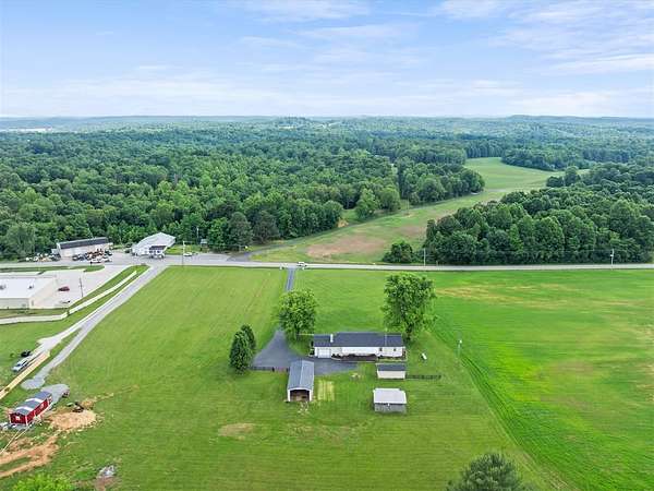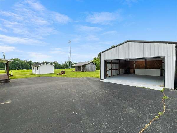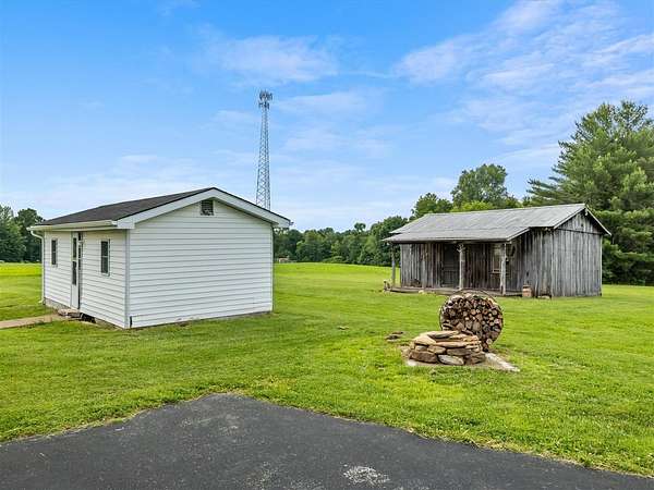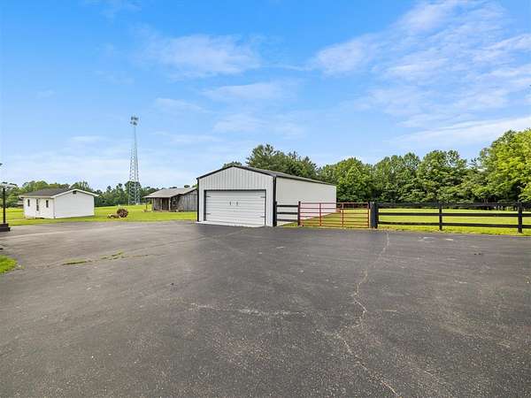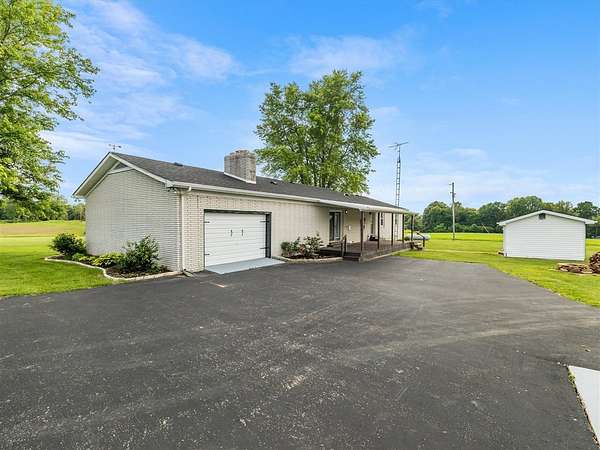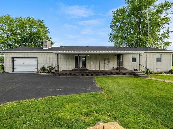 Hey folks! Looking for more space than a small lot, but not a full-scale farm? This 3.06-acre property features a beautifully maintained 1,830 sq ft brick home with a 1-car attached garage. A blacktop driveway with brick columns and mailbox leads to a gently sloped entrance and a spacious front yard. Ideal for big acreage living, the property includes a detached 2-car garage, a barn-style shed for hay or animal shelter, a back field perfect for livestock or chickens, and a small wooded area for shade. There's also a storage building and a rustic cabin. Inside, enjoy an open-concept living, dining, and kitchen area with a real wood-burning fireplace (with insert) and a convenient wood pass-through from the garage. The home has 3 bedrooms an office or additional bedroom, 2 full bathrooms, fresh paint, new flooring, countertops, light fixtures, updated landscaping, and more. A large concrete front porch and covered rear deck complete the charm. Recent updates include a new dimensional roof and gutters (2023). This is a must-see property!