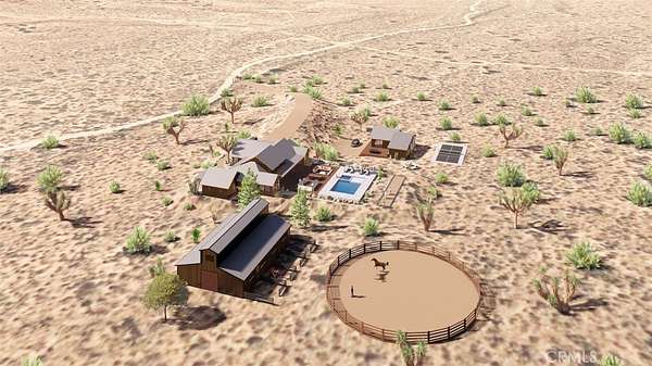 Perfectly suited for the equestrian enthusiast, this sprawling acreage is a prime horse property complete with trails for riding and hiking that allow you to explore the rugged beauty of the surrounding landscape. The southern section of the property abuts the Joshua Tree National Park, providing a serene backdrop and direct access to nature's unspoiled splendor.