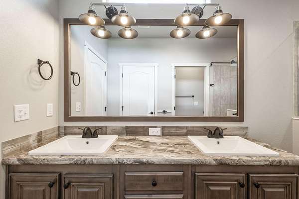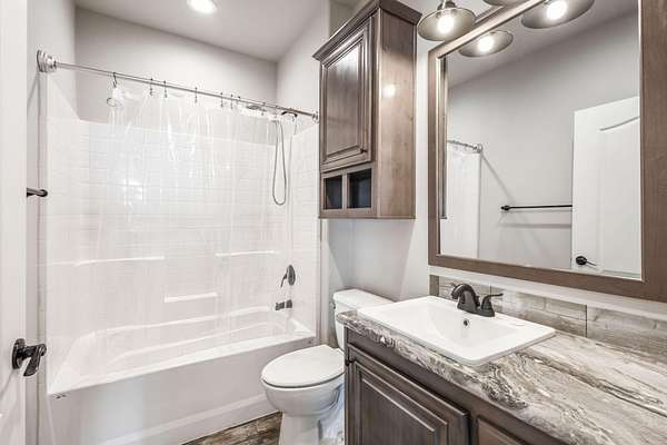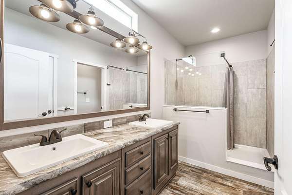 - Breakfast Bar, Built-In Features, Double Vanity, Enclosed Toilet(s), Fiberglass Stall Shower, Granite Counters, Kitchen Island, Laminate Counters, Open Floorplan, Pantry, Shower/Tub Combo, Smart Thermostat, Soaking Tub, Solid Surface Counters, Stone Counters, Tile Shower, Vaulted Ceiling(s), Walk-In Closet(s)