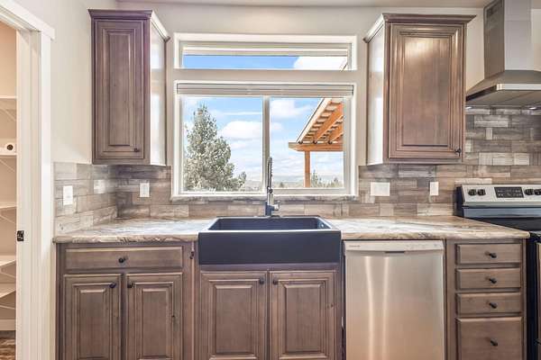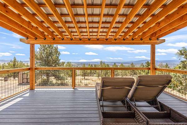 Imagine relaxing, sunbathing or dining on your covered 15X20 custom deck with extraordinary views of the beautiful Cascade Range. Take advantage of the spectacular views, as well from the inside of the house with its many large windows!! This home is custom-designed with a spacious floor plan with many upgrades including the carpet ''sinkoloy'' clay fired kitchen sink. Plank flooring, high quality custom accordion shades. It is equipped with a garbage disposal system, kimmer switches on lights, two extra doors on the back and side of house. You will enjoy the additional interior custom wood trim including sliding ''barn doors'' into the office/bedroom. The home is located in the Round Butte Recreational area just a short, six mile, drive to Lake Billy Chinook. If you love fishing or boating this place is for you!!!