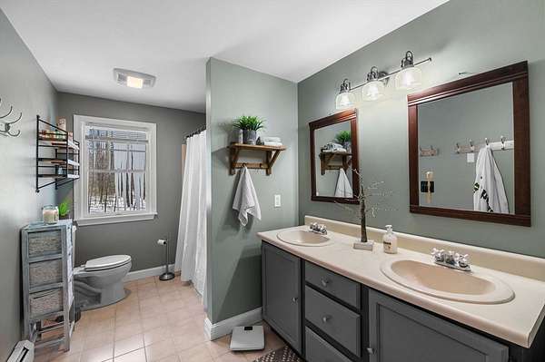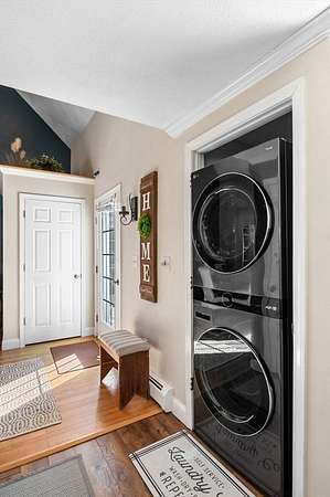 Set on a scenic 1.63 acre lot, this spacious Salisbury home offers exceptional flexibility and is just 10 minutes from the beach and nearby walking trails. Filled with natural light, the home features an inviting floor plan with generous living and dining areas, ideal for both everyday living and entertaining. The main residence includes four bedrooms, two full baths, and two half baths. A finished attic provides valuable bonus space perfect for a home office, playroom, or creative studio, while the full basement offers endless possibilities for storage, a gym, or recreation. An additional side-by-side living space with its own kitchen, living area, and private deck adds versatility for extended living or guests. Multiple decks, a beautifully landscaped yard, and a peaceful outdoor setting complete this unique property.