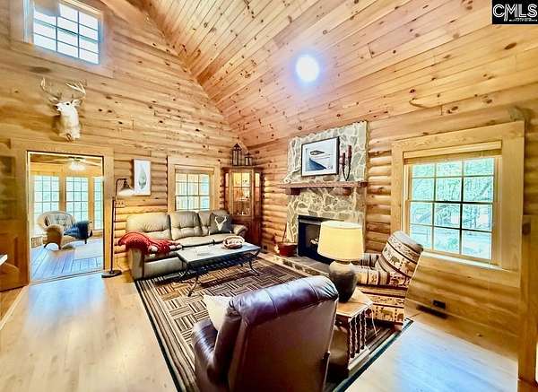 If you've been looking for your "little cabin in the woods", this is it. A gorgeous custom log home on a 1.5 acre parcel offers you privacy surrounded by nature and access to beautiful Lake Wateree! Once you enter the gated entrance, this home sits beside a private waterfront access area that you share with just a few of your surrounding neighbors. The custom log home features vaulted tongue in groove ceilings, lots of windows, wood floors and a gas fireplace. A tankless gas water heater and new 3 ton gaspac were installed in 2019. The floor plan is flexible with a master downstairs and a flex room/sun porch on the other end of the home. This room was previously used as a 3rd bedroom so previous owners installed a walk in closet and half bath. There is also a loft bedroom upstairs that could also be an office. The private lake access has a covered picnic shelter, aluminum benches, private dock and swim area. From Memorial to Labor day, there is a port-a-john installed that is cleaned weekly. Extras include a heated and cooled workshop, shed, and carport or boat cover. Sit on the screened porch and listen to the birds or walk down to the dock at the private waterfront park. So peaceful and private! You'll feel like you're sitting on a mountaintop. It's the best of both worlds! Disclaimer: CMLS has not reviewed and, therefore, does not endorse vendors who may appear in listings.