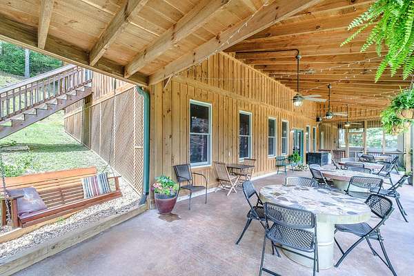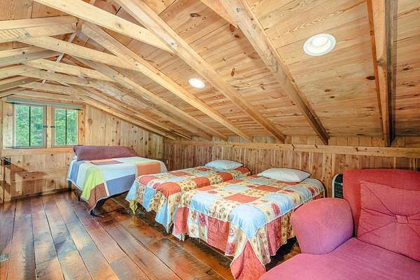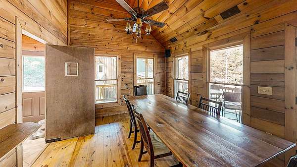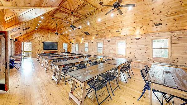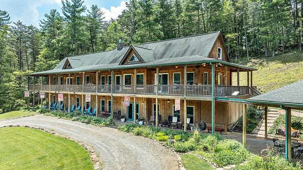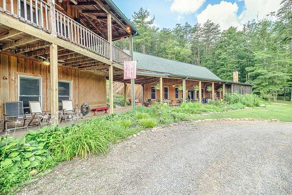 A Unique 100-acre Wilderness Recreation Estate adjoining the Jefferson National Forest in Virginia is a Turnkey, income-generating AirBnb Superhost, and has been a popular Outdoor Survival School, Youth Camp, Business Retreat & Event Venue. Designed to sleep up to 56 people, it offers 8,339 sq ft between the Main Lodge, Bunk Rooms, Cabin, Garage Apartment, Commercial Kitchen & Pub, Store, and 50'x24' Class/Meeting Room. Outdoor Gathering & Adventure Areas include a 260 SqFt Screened Porch w/Wood Stove, 3,500 Sq Ft of Covered Porches, a Covered Stage, Pond, Streams, Miles of Groomed Trails & Campsites throughout the 100 Acres. *BY APPOINTMENT ONLY, NO DRIVE-BYS PLEASE!* 18 Miles to VA Tech/Blacksburg, 28 Miles to Roanoke Airport. In a Land Use Conservancy & Surrounded by National Forest, Near the Appalachian Trail, it has Diverse Use potential, including Short-Term Rentals, Business & University Retreats, Reunion & Wedding Venue, Outdoor Recreation Camp, Special-Ops Training, a Yoga Center, etc. SALE IS FOR REAL ESTATE ONLY