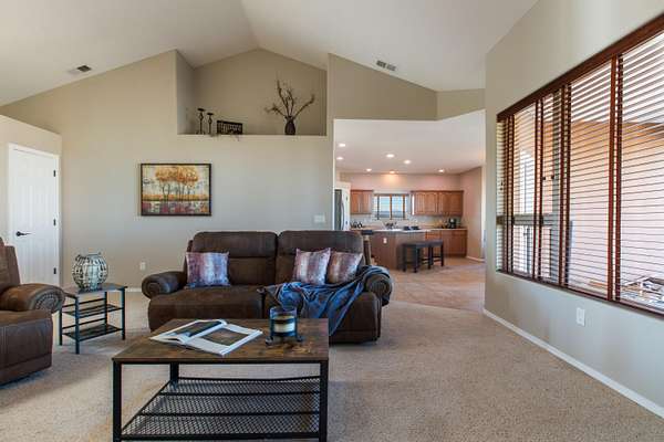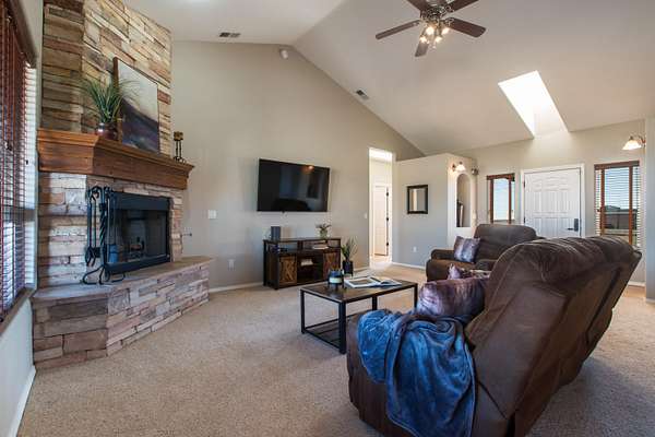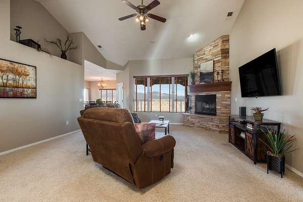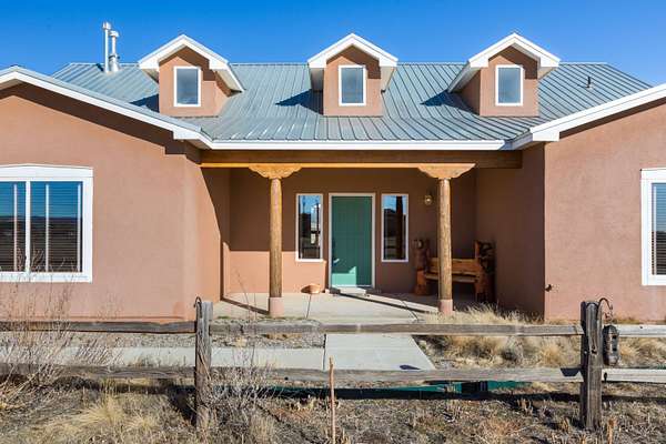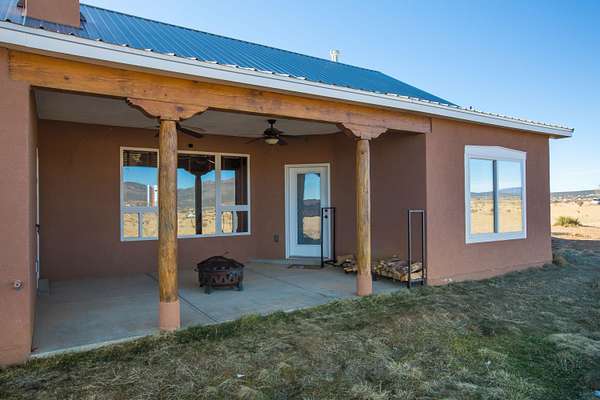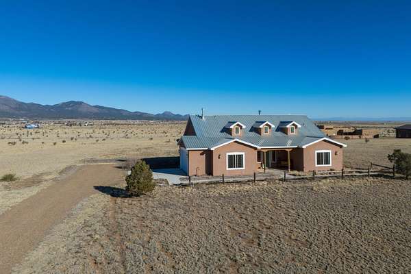 Welcome to this charming Northern New Mexico-style single-story home with beautiful mountain views. Set on two peaceful acres, 57 High Meadow Loop offers the best of country living while still close to Edgewood shops, restaurants, and easy freeway access.The open floor plan feels light and welcoming, featuring a spacious kitchen with island and ample storage. A custom stacked-stone fireplace creates a warm focal point in the living area. The primary suite includes double sinks, a jetted tub, separate shower, and walk-in closet.Enjoy stunning sunsets from the covered patio with access from both the kitchen and primary suite. Additional highlights include a pitched metal roof, natural gas, community water, proximity to Estancia Valley Classical Academy, and horse-friendly acreage.