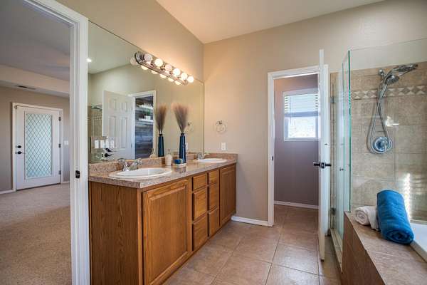 - Breakfast Bar, Cathedral Ceilings, Ceiling Fans, Country Kitchen, Dual Sinks, Garden Tub Roman Tub, Great Room, High Ceilings, Kitchen Island, Main Level Primary, Separate Shower, Walk In Closets