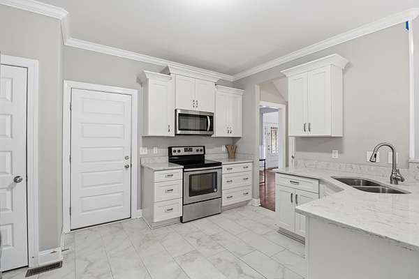 Welcome to your dream home nestled in the tranquil hills just outside of Murfreesboro! This charming home features 3 bedrooms and 2.5 baths, offering the perfect blend of comfort and style. Situated on a sprawling 5-acre lot, you'll enjoy ample space and privacy. Inside you will find a welcoming living room with gas fireplace adjacent to your spacious kitchen. Featuring stainless steel appliances, elegant quartz countertops, and beautiful tile floors, the open kitchen is perfect for entertaining guests or simply enjoying a cozy meal with family. The primary bedroom downstairs features an en suite bathroom with separate shower and jetted tub and large walk in closet. Upstairs, an oversized bonus room awaits, offering many options for a home office, playroom, or additional living space. The convenience of a walk-in laundry room adds practicality to your daily routine. Outside, a charming firepit awaits by the creekside, providing the perfect spot for gatherings and relaxation.