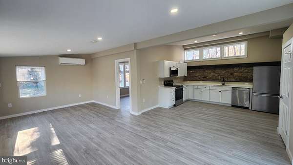 Welcome to Chalfont Boro! As you enter this rear unit from the freshly poured concrete patio, you walk into a fully reinvented bottom unit that offers first floor living. The main entrance opens into a sitting room with a half bathroom and laundry room that divides the primary bedroom area to the right and the open kitchen and living area to the left. The primary bedroom area includes a full bathroom with large bedroom area with its own mini split. When entering the recently constructed kitchen, you will observe the grand eating area that is also opened into the living area with great views of the Neshaminy Creek. From the living area, you can use the sliding glass door to relax on the back patio and/or you can enter the second bedroom that has a vaulted ceiling. This unit is available for 2/1/26 and only Comcast Internet and TV are offered for this unit. 1st month, 2nd month, and Security Deposit will be needed to secure this unit. Feel free to make an appointment to view this apartment that has a lot to offer and is minutes from the center of Chalfont, the Chalfont Train Station, and a short drive to Doylestown!