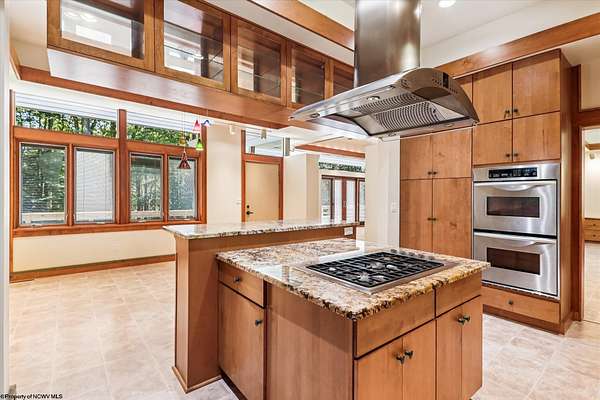 This beautifully designed home situated on a beautiful 5+ acre Timberline lot, with views of Timberline ski area, blends modern comfort with natural surroundings. This home features clean architectural lines, stone accents, and expansive windows that bring the outdoors in. An attached garage, open living spaces filled with natural light, a beautiful gourmet kitchen, and plenty of space for hosting all your friends. Don't forget your pooch! This home also features a custom-built dog run. Located in the highly desirable neighborhood of the gated community Old Timberline, which includes private access to Dolly Sods, two lakes, and endless hiking trails to explore. Whole house natural gas generator.