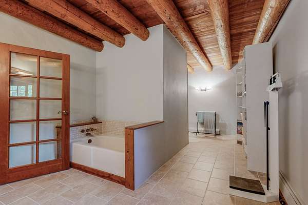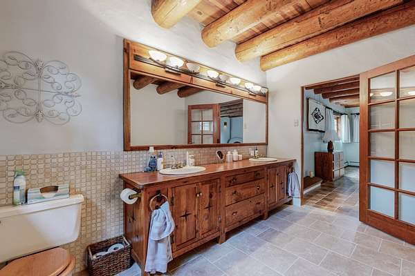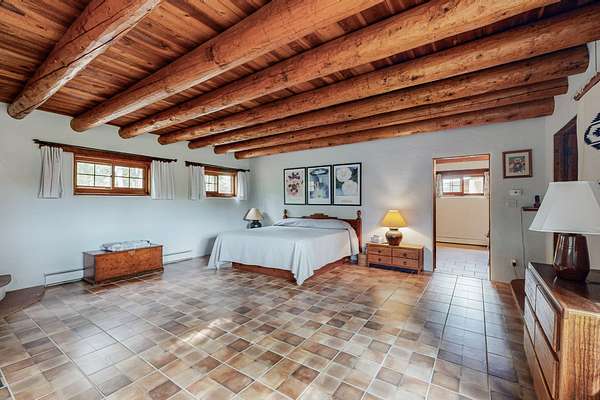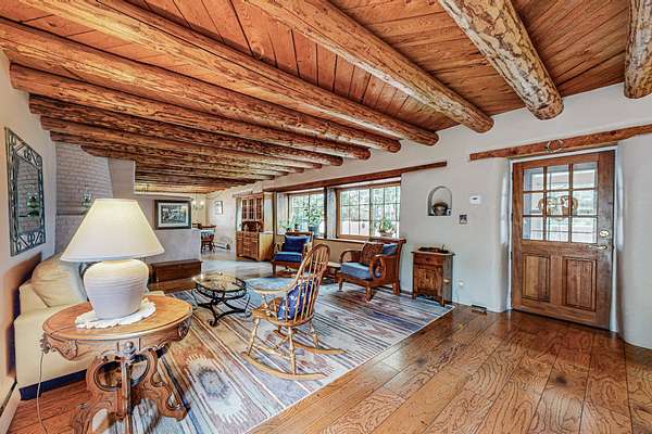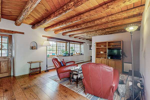 HUGE PRICE REDUCTION. A beautiful 2,588 square foot adobe home, surrounded by trees, shrubs, and wild flowers is a home and land that are rarely found together. As one approaches the house, there is a walled courtyard, with a flagstone sidewalk and flower beds, ready to make yours. Upon entering the home, one is welcomed into the living-room/ family room, by the view of a kiva fireplace to the right, the beautiful ceilings, with the vigas, separated by wood planks, the beautiful bright and shiny wood floors, and then there are the double adobe walls that are visible as one looks at the windowsill that once showcased many plants. The initial part of the house has double adobe walls. This part of the home has the kitchen, dining area, family/living room and a 3/4 bath. The kitchen/dining area is a sight. The stainless steel refrigerator and freezer do stand separately. Having a full-size freezer in the kitchen is very convenient. The bedrooms and owner suite bathroom is large, and spacious. The beautiful kiva fireplace makes this en suit very cozy and inviting. A good sized office, craft room, study, whatever the new owner wants to make it, is between the two bedrooms. The second bedroom, spacious as it is, could easily be more than just a bedroom. There is a detached, two car garage and another separate building for storage. Although the Chama river does not run directly alongside the land, one can watch the river meander and listen to the water flow. Imagine what this beautiful running body of water has to offer, a chance to relax and listen to the splashing water, and observe the sky and grandeur of nature. Minutes away from Los Alamos, Espanola, Santa Fe, and Abiquiu, this just may be the home you had only dreamed of. Time to make your dream come true.