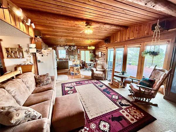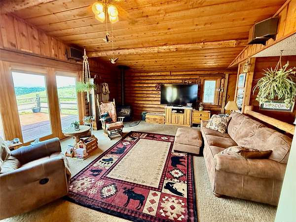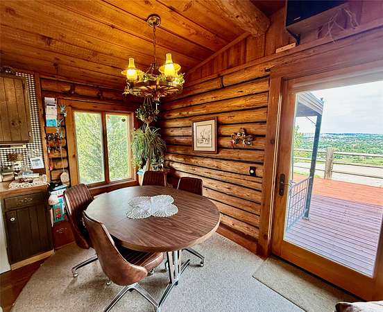 Enjoy breathtaking RIVER VIEWS from the oversized deck of this 3 BDR/2 Bath home overlooking the city of Great Falls. Take in fantastic mountain & meadow landscapes beneath a MONTANA SKY backdrop from this nearly 6 acre parcel. Experience country style living in a comfortable log home within minutes from the many amenities a city can offer. A drive under 2 car garage and storage sheds provide protection for vehicles and tools needed for this lifestyle. HORSES ARE ALLOWED and the 2 pastures are within eyeshot of the home. Trees and lilac bushes surround the home and provide a tranquil setting. Features include central air, a self standing gas fireplace, metal roofing, & an on demand hot water heater. Property has a $150 annual road maintenance agreement. Large 3rd Bedroom in basement could be used as a master suite or family room.
