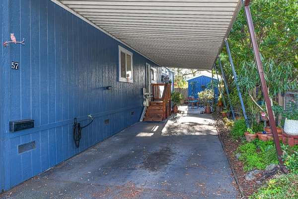Gardeners Delight! Located in the desirable Petaluma Estates (55+) community, this welcoming 2-bedroom, 2-bath, 1,440 sq. ft. home is surrounded by lush plantings that provide privacy and a peaceful, garden-like setting. Inside, the comfortable open concept floorpan includes a Living Room/Family Room, Dining Room, along with a bright kitchen featuring skylights, ample counter space, and abundant cabinetry. The primary bedroom is generously sized with a walk-in closet, and a storage shed adds extra convenience. Additional features include two covered carport spaces, central heating, and a laundry room with the washer/dryer included. Residents enjoy resort-style amenities including a heated pool and spa, clubhouse, sports courts, billiards room, BBQ area, and ample guest parking. Conveniently located near shopping, dining, medical facilities, Highway 101, and the SMART Train.