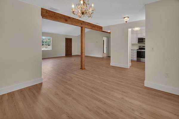 One or more photo(s) has been virtually staged. Modern. Classic. Updated. A little bit country. Close to town. Completely updated and move-in ready, this solid block 3-bedroom, 2-bath home with a 2-car garage sits on 2.77 beautiful acres just minutes from downtown DeLand. The desirable split floorplan has been thoughtfully renovated from top to bottom, blending modern updates with timeless character.