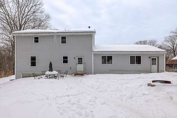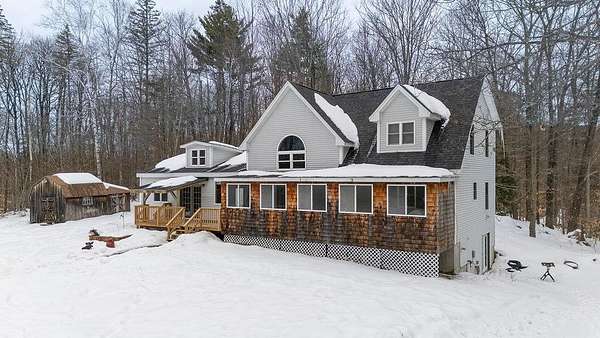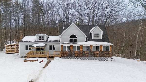 Looking to trade city noise for open skies and your own small farm? This property delivers the country life you've been dreaming of just 5 miles outside of town. Set on 15.3 acres with a beaver pond, stream, and mountain backdrop, this open concept Cape feels like a private retreat. From the enclosed front porch, step inside to a spacious dining area and kitchen with cathedral ceiling, hardwood floors, island with storage and a soapstone wood stove that adds warmth and charm. The first-floor primary bedroom includes a walk in closet and full bath, with a tiled laundry area conveniently located just off the bathroom. On the other side of the main floor is the living room, offering enough space to create multiple areas such as an office, play area and more, ideal for entertaining, relaxing, or hobbies. It features a beautiful, tiled floor, wood ceiling, built in shelves and a pellet stove for cozy gatherings. Step out onto the deck to take in the fresh air. Back in the main house, newly carpeted stairs lead to a bright loft perfect for a home office or guest space. Two additional bedrooms with hardwood floors and a tiled bath with shower complete the upper level. The walkout basement boasts high ceilings and is generator ready, offering excellent storage or workshop potential. Outdoors, the property is well equipped for small scale farming or homesteading with a wood crib, shed, and greenhouse frame near the main house and a newer 3 bay equipment shed and 3-stall barn with hay loft and standing hydrant just down the driveway. The pasture and run-in shed offer plenty of space for animals and the landscape includes fruit trees and raspberry bushes. Whether you're starting a hobby farm, seeking privacy, or simply craving a slower pace surrounded by nature, this property is ready to welcome you home. Just over 1.5 hours to Boston, close to outdoor recreation from mountains to lakes. Showings begin at the Open House on Sunday, February 22nd from 11-2.