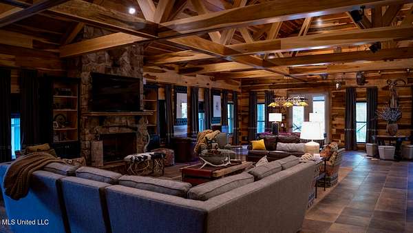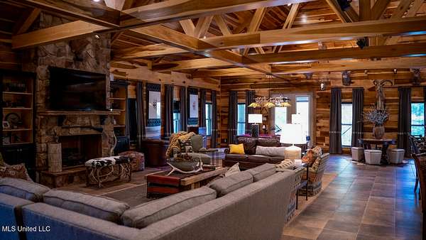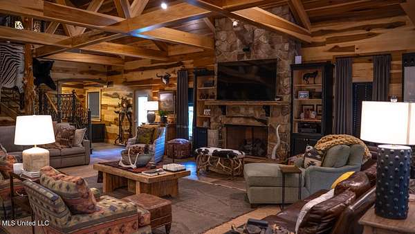 Rustic Luxury Lodge with Modern AmenitiesThis lodge combines rustic country charm with all the modern luxuries you desire. Each downstairs bedroom has a private bath, and the master suite features dual bathrooms for ultimate comfort. The loft area provides ample sleeping space, allowing the lodge to comfortably accommodate 15+ guests — ideal for a corporate retreat property in Mississippi or large family gatherings.