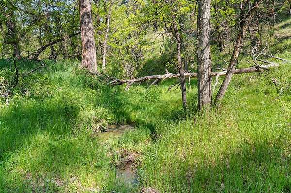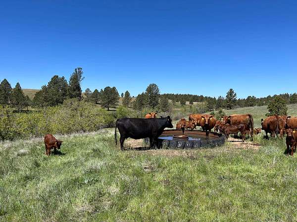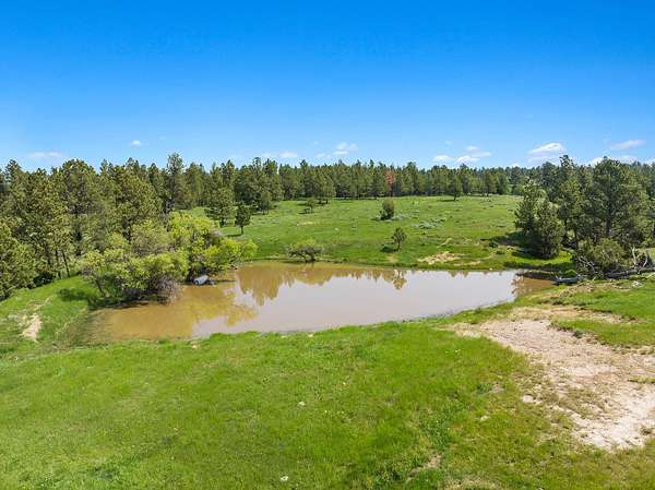 The ranch features a diverse mix of rolling meadows, pine-covered ridges, and oak-lined draws, creating an ideal habitat for trophy elk, deer, antelope, and upland birds. Two landowner elk tags are currently issued annually, underscoring the property's strong wildlife presence. Water is abundant across the ranch, with three permitted wells and a poly pipeline network feeding 18 stock tanks, plus springs and reservoirs that provide additional stock water.