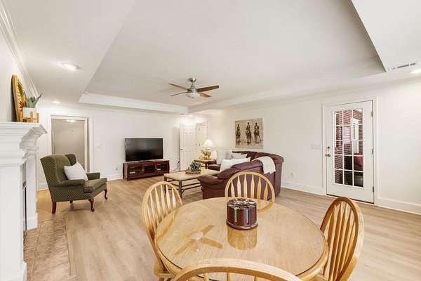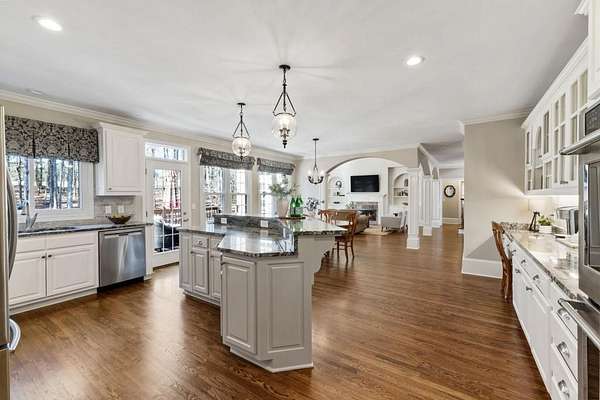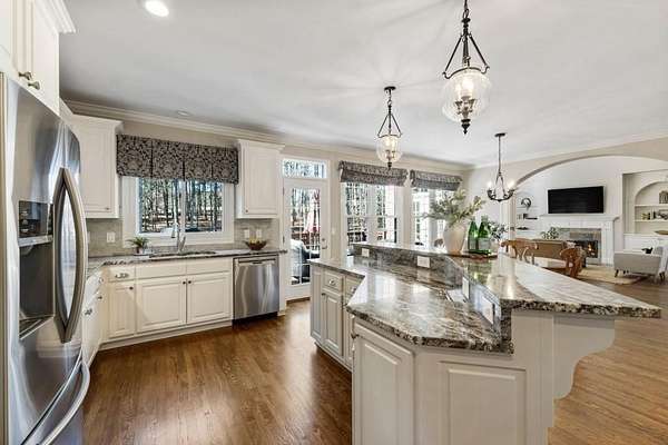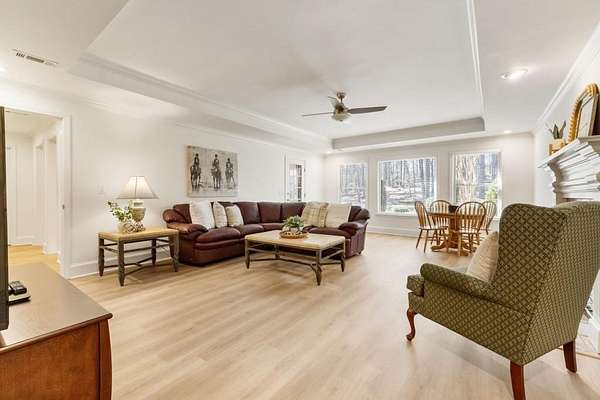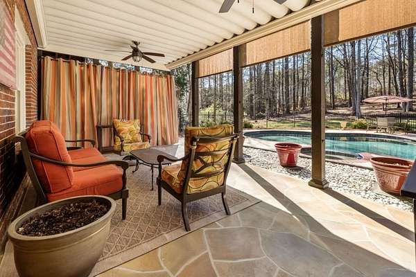 Beautifully maintained home in Milton's desirable White Columns country club community, situated on a peaceful street. This move-in-ready property features an open-concept layout, ideal for comfortable daily living and easy entertaining. The kitchen opens seamlessly to the family room, where large windows offer views of the backyard pool and a view of the golf course. Step out to a private outdoor space with a deck suited for casual meals, the pool, and a roomy grassy area for relaxation or play. The main level includes two living areas, one that doubles nicely as a home office, plus a spacious dining room for hosting, and a guest suite with its own full bath. Upstairs, the primary suite provides a quiet retreat with his-and-her closets, a cozy sitting area, and lovely backyard views to start your day. Two additional well-proportioned bedrooms each come with an en-suite bath. The finished terrace level offers versatile bonus space, with new flooring and paint. It includes another guest suite with full bath, a dedicated office, and a flexible room perfect for a gym, library, etc. This space is great for get-togethers and convenient access from the pool and patio. Key recent updates: newer roof, energy-efficient HVAC, main-level rear windows, fresh terrace-level paint and flooring, and new upstairs carpet. Just minutes from the shops and restaurants of Downtown Alpharetta, Avalon, and Crabapple, and served by excellent North Fulton schools. Optional White Columns Country Club membership opens up golf, tennis, and swimming amenities and so much more! Come see the appeal at 570 Glen Hampton Drive for yourself!
