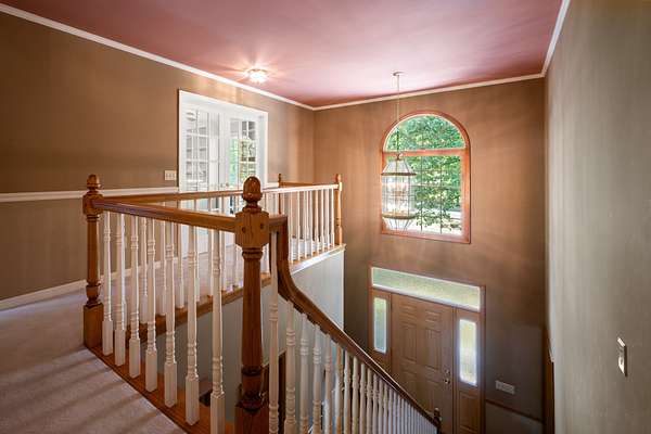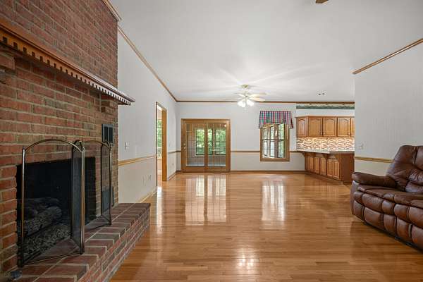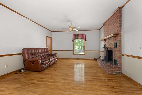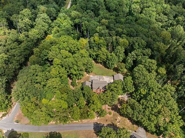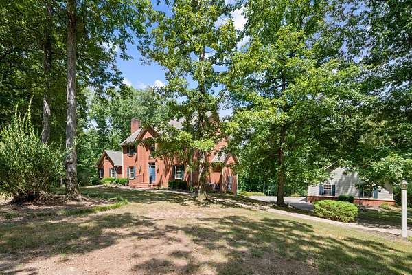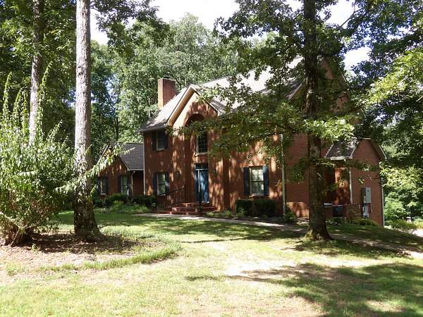 What a perfect spot to raise your family! This house boasts 4 bedrooms, 3 1/2 baths, living room, dining room, large eat-in kitchen/den with fireplace. You have the option of an office, music room or sitting room leading to the master bedroom suite. The master bedroom has a trey ceiling, walk-in closet in the master bath with jetted tub & separate shower, double vanities, tile and corian counters. All of the main level has hardwood flooring with the exception of the tile baths. There is a powder room on the main level right off the entrance foyer. The kitchen is top notch with cabinets, pantry, granite counters, double oven, cooktop, DW & Trash Compactor. The counter space is wonderful! Upstairs consists of 3 bdrms 1 full bath & a separate den/study with built-ins. Basement area could be a separate apartment, mother-in-law suite. It consists of an extra large utility room with cabinets, kitchen area which is part of the recreational room, large enough for sleeping area. There are two separate HVAC units gas/electric, attached 2 car garage with electric opener, 2 electric boxes. There is a detached 23x27 garage/shop for boats, woodworking, etc. Large deck with built-in gas grill, patio under the deck, concrete drive, treed lot that is 6.30 acres. The home is located in Tall Trees Estates along with other really nice homes to protect your value. There is not much that you can't find in this custom built home. James Rochelle, one of the best builders around custom built this home for the owners. They are the only residents that have lived in the home, first time on the market. Call to see this lovely brick home!