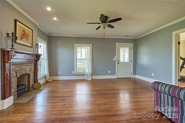 Discover timeless elegance and modern comfort in this beautifully restored 1929 home nestled on 20 fully fenced acres with 2 barns. This unique property offers the best of country living with high-end equestrian facilities, incredible views, and modern conveniences-an exceptional opportunity to own a turnkey horse property in the heart of NC horse country. Renovated to the studs in 2013, this home blends classic charm with updated sophistication, from beadboard ceilings, hardwood floors to curated modern touches in the primary, kitchen, and baths. Multiple turnouts, run-ins, hacking lanes, and a shared pond. Round pen and a large arena, circle drive for large rig access and parking. 4-stall center aisle barn with loft, washrack, feedroom, shaving storage. 8+ stall shed row barn includes tackroom, 2 tacking stalls, washrack, & equipment storage. Layout has been designed for true efficiency and ease. Just 15 minutes to TIEC. 40 mins to Greenville-Spartanburg Intl Airport.