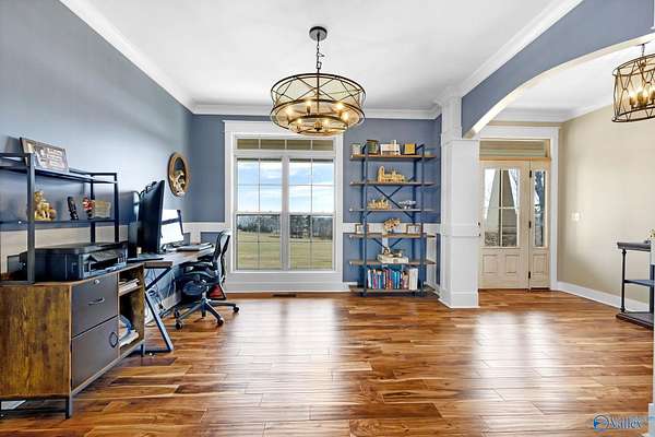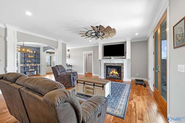 Situated on 2.75 acres in the DAR school district, this 2016 craftsman style home offers 2,991 square feet of functional living space. With four bedrooms, three full baths, and a dedicated office, the layout provides flexibility for work and everyday life. The main living area features a gas log fireplace and flows into a kitchen complete with granite countertops, a large island, pantry, gas cooktop, microwave, and dishwasher. The primary suite includes double vanities and a walk in closet. Enjoy the outdoor fireplace sitting area, along with stone and fiber cement siding, a side entry two car garage, and concrete driveway. Convenient to Highway 431 and 79.