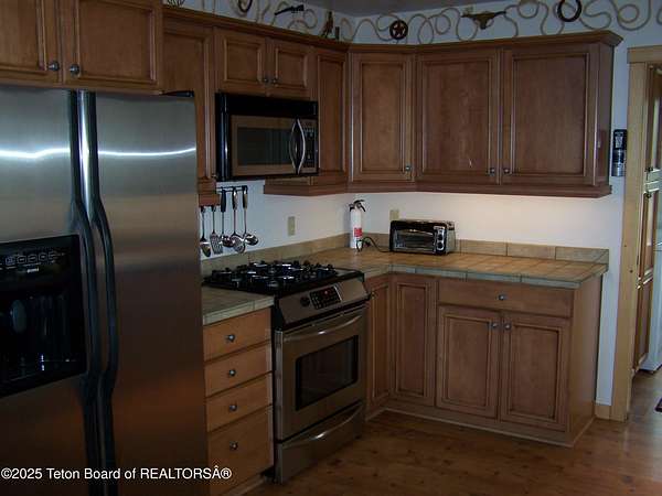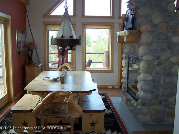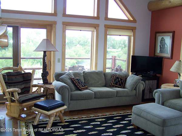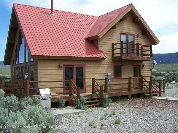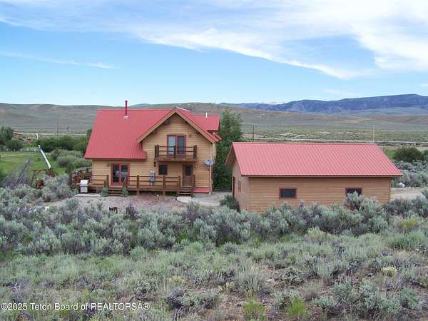 Est $5,133/moSeldom to the market, a 1,524 sq ft home with live water on the property. This timber framed home overlooks the East Fork River east of Boulder, Wyoming. The home has 3 bedrooms and 2 baths. The cathedral ceiling living room has a full wall of windows for a fantastic view. In the center of the living room stands a beautiful, cultured stone two-sided gas fireplace. The kitchen has tiled counter tops with nice cabinetry and upgraded appliances. Home is being sold furnished. The garage has a workshop, plus a separate oversized two bay area with two garage doors with openers. This home has very little time lived in and is mostly Maintenace free.