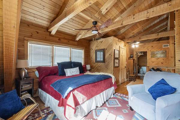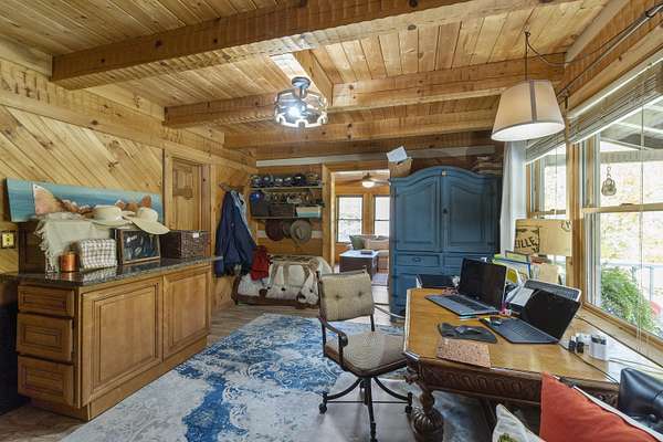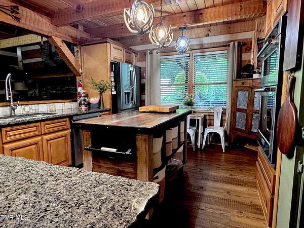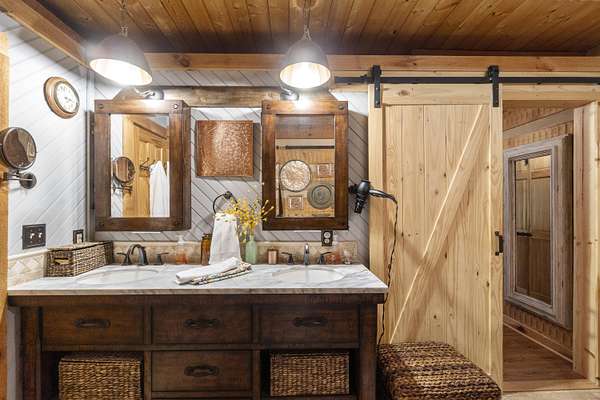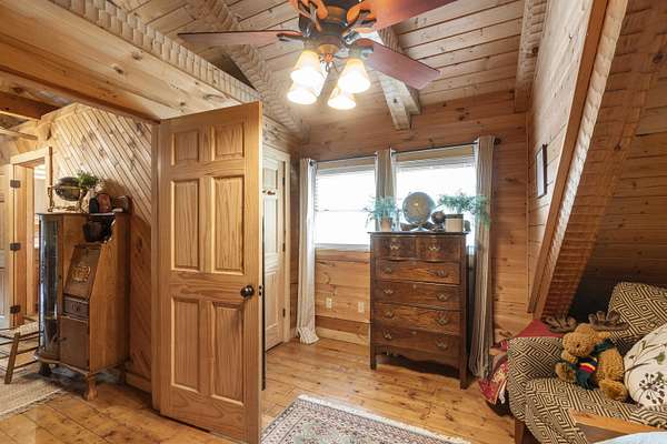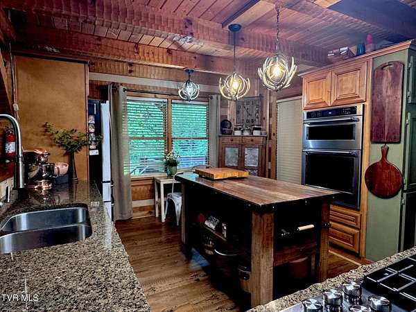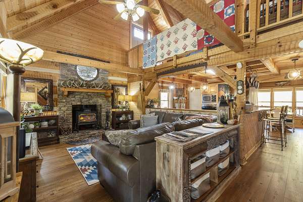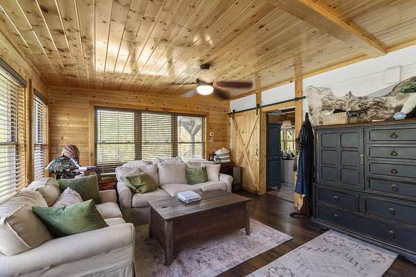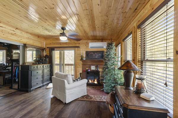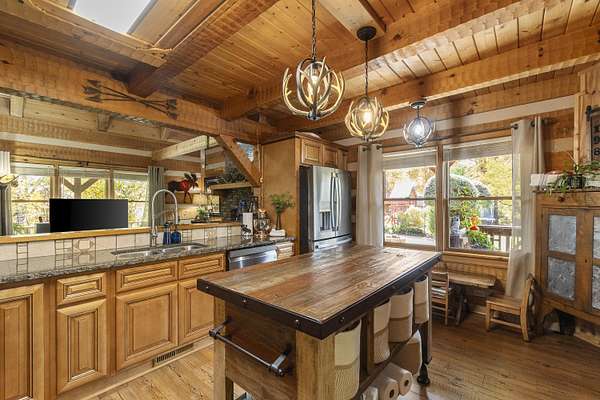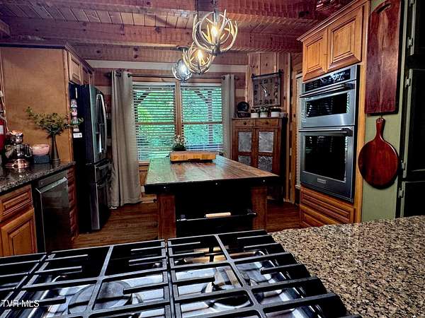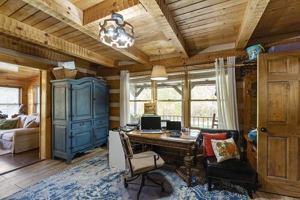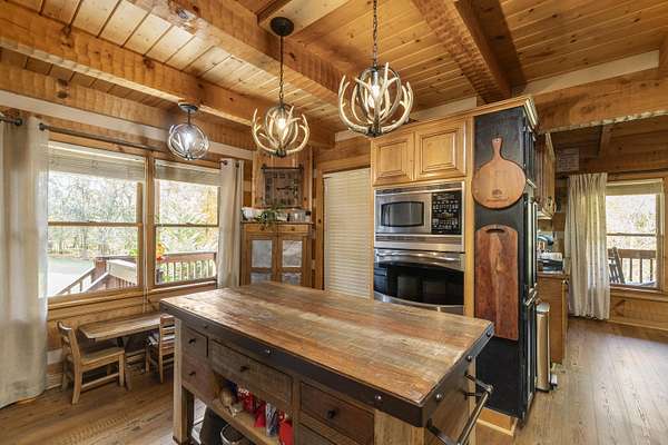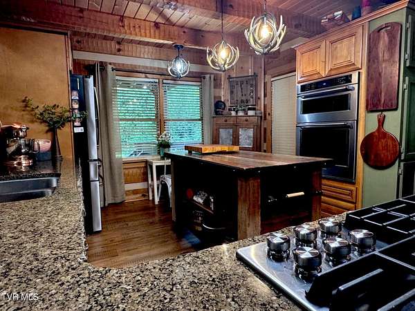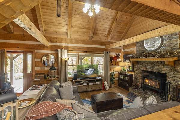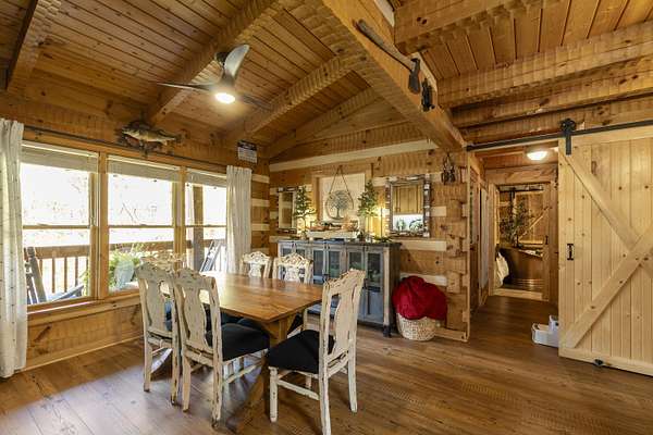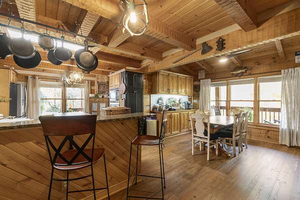 Introducing a breathtaking log cabin retreat nestled in the scenic beauty of Greeneville, Tennessee. This custom-built, 4,000+ sq ft Hearthstone log home offers the perfect blend of privacy, and natural splendor. As you step inside, you'll be greeted by the warmth of the spacious interior, adorned with cathedral ceilings and large wood beams. The open concept design showcases the grandeur of this home, with large windows allowing natural light to flood every corner. The kitchen is a chef's dream, featuring chiseled granite countertops, KitchenAid gas flat top range, and ample space for culinary creations. The main level also boasts a generous living space, perfect for entertaining family & friends. With 4 bedrooms and 3 full baths, there's plenty of room for everyone. The expansive primary bedroom offers a private office, an en-suite, and a large walk-in closet. The remaining bedrooms are spacious and inviting, ensuring comfort for all. Situated on 28 secluded wooded acres, this property offers the ultimate retreat. Immerse yourself in the tranquility of nature, with seasonal mountain views & the soothing sounds of the nearby river. Enjoy leisurely strolls through the woods or unwind at one of the two pavilions, one nestled by the river's edge & another conveniently located by the house. Gated access ensures privacy/security, while a 3-car carport & an attached garage providing ample parking space. The property also features a large barn and four equipment parking areas, catering to those with hobbies or needing additional storage. Conveniently located just 60 miles from Asheville, N.C., this log cabin is ideal for those seeking a serene mountain escape, private compound , lots of wildlife& Reduced carbon footprint. Easy access to city amenities. Moreover, attractions like Dollywood and the Bristol Motor Speedway are within an hour's drive, offering entertainment options for every taste. Don't miss this extraordinary opportunity to own your own secluded log cabi ROOF REPLACED IN 2018 PROPANE ADDED TO HOME AND THE HOUSE PAVILION 2022 WIRING FOR EV CHARGER ADDED 2022 PROPANE FIREPLACE / JUTOL STOVE ADDED TO DEN 2022 PROPANE GAS COOKTOP ADDED 2023 GE PROFILE REFRIGERATOR 2023 NEW UPPER DECK AND DOOR 2023 NEW MINI SPLIT 2024 Generac Generator added NEW HVAC 4/20/25 NEW SHOWER FIXTURE/ PEX PLUMBING 5/05/2025 GREAT ROOM CEILING FAN INSTALLED 5/2025 CAMPING AREA AT THE RIVER ADDED 5/ 2025 NEW AIRFRY/ CONVECTION OVEN AND MICROWAVE ADDED 2025 . Second home could be possible on the 11 acre tract. that has the river frontage. Buyers agent to verify all with the county and utility servicers. All information taken from a third-party source (courthouse/tax records) and to be verified by the buyer/buyer's agent. Drawn in lines are approximate. Some ents (fires in fireplaces, twilight shading, lighting, etc.) have been added/modified digitally. Rooms noted have been virtually staged for decorating ideas only, not to scale or representative of any product. CubiCasa app used for floor plans, dimensions not guaranteed.