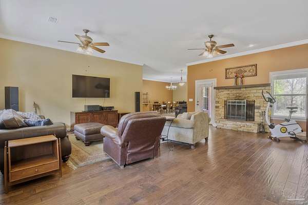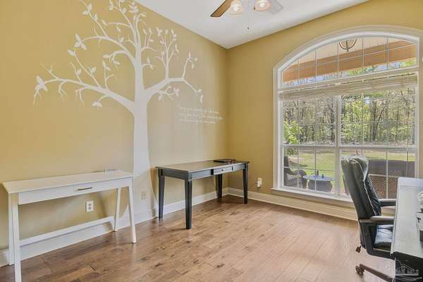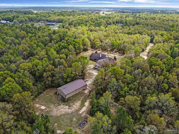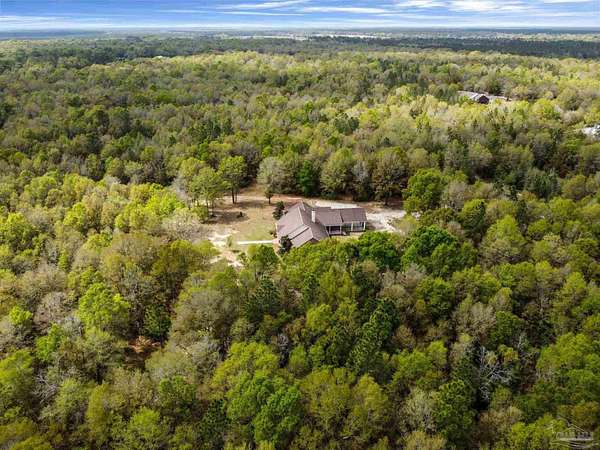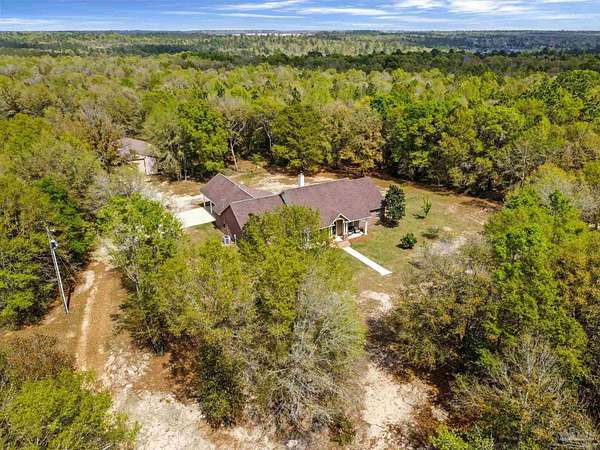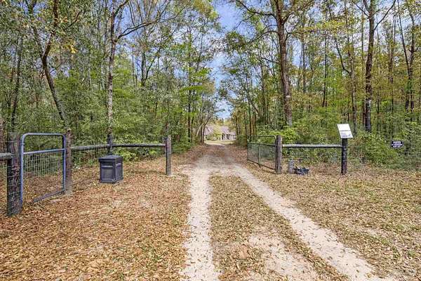 A Rare 10-Acre Retreat That Feels Like a World of Its Own Tucked away on a private road yet just minutes from everyday conveniences, 5700 Hunters Oak Trail offers a rare blend of accessibility and seclusion. As you arrive, the noise of the outside world fades... replaced by quiet, wooded beauty and a sense of space that's hard to find. Set on 10 FULLY FENCED acres of peaceful, tree-lined land with well-maintained, walkable nature trails to explore, fruit trees, and hunting stands already in place (if that's your thing), this property invites you to slow down and enjoy the outdoors, complete with two gated entrances-one solar-powered/electric-for added convenience and security. The setting is nothing short of magical - serene, private, and full of possibility. Inside, the home offers 3 bedrooms, 3 full bathrooms, a half bath, and a dedicated office in a thoughtfully designed split floor plan. The great room features high ceilings and a striking fireplace, opening into a spacious layout that feels both expansive and welcoming. The kitchen is a standout, with beautiful granite countertops (including a granite sink), a large center island, wine fridge, and built-in rack, designed for both everyday living and entertaining. Step out to the covered back porch overlooking the property perfect for relaxing, entertaining, or even envisioning a future pool just beyond. A massive, well-built garage/workshop adds incredible versatility for storage, hobbies, or equipment. This is the kind of property that surprises you. The kind you don't expect to find, and once you do, it's hard to forget. Schedule your private showing and come experience it for yourself!