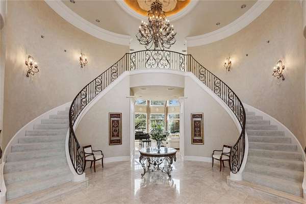 Nestled within the prestigious guard-gated Tour 18 community, this extraordinary steel-framed estate is a masterpiece of enduring luxury and impeccable design. Spanning three levels, it offers an unparalleled living experience with a fully equipped basement featuring a wine cellar, massage room, and gym. From the moment you enter the grand foyer, marked by dual staircases and soaring ceilings, you are enveloped in elegance. The expansive primary suite is a private retreat, complete with its own lounge, a spa-inspired double shower, and a lavish soaking tub. Every inch of this home showcases captivating architecture, bespoke finishes, and thoughtfully designed spaces, including a formal living and dining area, a private study, a versatile family room, and a chef’s kitchen crafted for both beauty and function. Multiple balconies and patios frame breathtaking views of the golf course and resort-style pool, while a separate guest quarters ensures comfort and privacy. Designed to stand the test of time, this estate is more than a home—it’s an unparalleled sanctuary where sophistication meets effortless luxury.