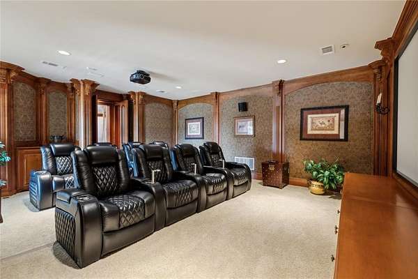 - Built-In Features, Built-In Wine Cooler, Cable TV Available, Central Vacuum, Chandelier, Decorative Lighting, Double Vanity, Dry Bar, Eat-In Kitchen, Flat Screen Wiring, Granite Counters, High Speed Internet Available, In-Law Suite Floorplan, Kitchen Island, Multiple Staircases, Natural Woodwork, Open Floorplan, Pantry, Sound System Wiring, Vaulted Ceiling(s), Wainscoting, Walk-In Closet(s)