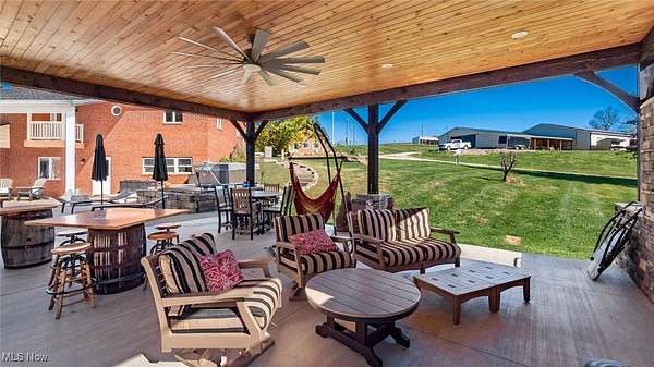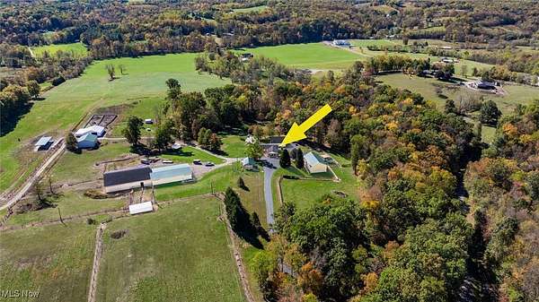 Here it is!! This property is more than you could imagine! With +/- 112 acres there is so much to offer. Nice brick home with 3 bedrooms and 3 full baths, 2 laundry rooms, large great room with a warm wood fireplace, and exceptional kitchen. The kitchen has Amish built cabinets, granite countertops and stainless steel appliances. Enjoy your mornings enjoying the 3 seasons room. Step outside to the outdoor covered patio. Enjoy the built in fireplace, and most of all the outdoor stone fire pizza oven. Don't foreget to collect all the buckeyes from the Buckeye Trees. Start out driving through the security gate to peace and quiet. The property offers a beautiful log cabin with so many options, living quarters, man cave, or a perfect she shed. Continue to the 35x80 horse barn and 64x88 indoor horse arena. Let's not stop there, an additional garage with 2 over head doors, large enough for your motorhome, boat, cars, or all the tools. Offers...electric, heat, insulated, and overhead loft. With an additional garage and numerous pole barns throughout the property, perfect for storing feed, hay, and farm equipment. This farm is completely fenced! You will also love the solar panels for savings on electric. additional parcels 62-20-01-23-000 (survey being done for split) 62-39-01-11-009, 62-39-01-11-004, 62-39-01-09-000, 62-39-01-11-005, 62-20-02-08-003, 62-39-01-11-008 Listing agent related to seller