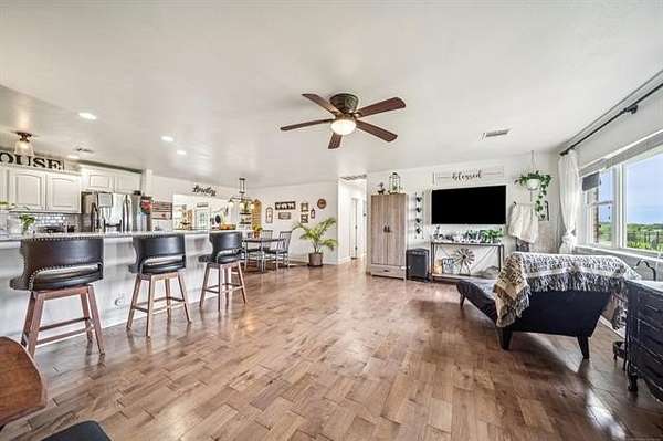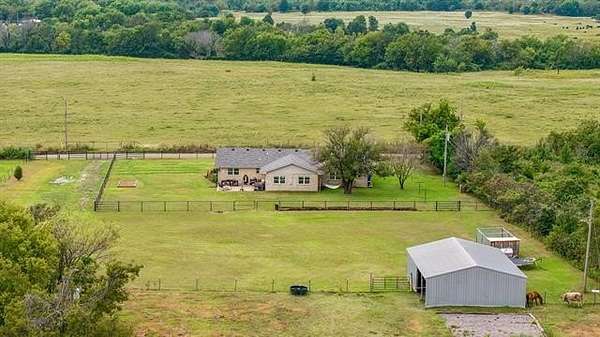 Your dream ranch lifestyle begins here on 5.47 acres of open land, a well-maintained and thoughtfully updated 4-bedroom, 3-bath home on 5.47 acres with wide open views and timeless country charm. Designed with a spacious split floor plan, the home boasts two warm and welcoming living areas, an abundance of natural light, and a cozy fireplace in the den that creates a truly comfortable, homey atmosphere. The kitchen is both stylish and functional, featuring granite countertops and plenty of space for gathering. Throughout the home, you?ll appreciate the durable wood veneer and tile flooring, blending rustic appeal with modern convenience. The septic was updated within the last two years, along with a reliable 7-year-old roof. Step outside and enjoy the serene countryside setting complete with a sturdy 30x40 barn with electricity perfect for livestock, hobbies, or storageand strong pipe fencing that frames the land beautifully. With 5.47 acres of usable space, you'll have room for gardens, animals, or simply soaking in the peaceful, open-air lifestyle. Whether you're seeking a working farm, a stylish ranch, or a private country getaway, this property offers the perfect blend of charm, functionality, and natural beauty.