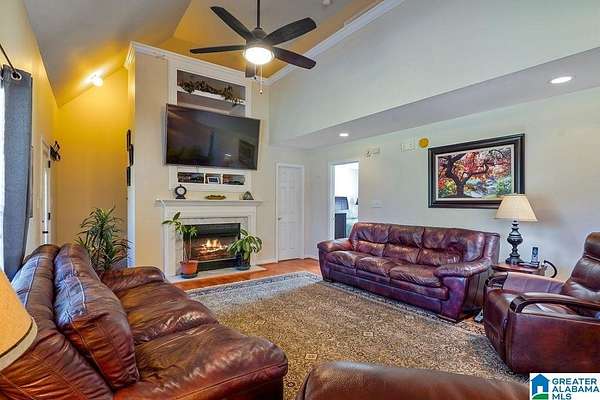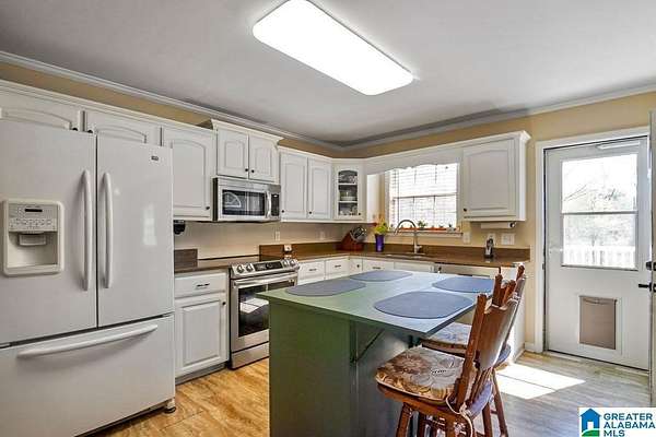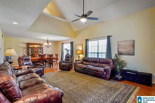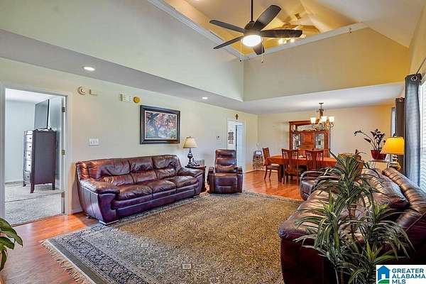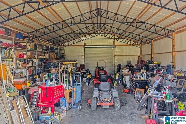 This stunning home sits on approximately 3 private, fenced acres, offering a country feel just two miles from I-459. The property boasts a 30x50 workshop with concrete flooring and roll-up doors on both sides, providing ample space for various uses. The beautiful home features an open layout with a spacious living room, high ceilings, and abundant natural light. Recent updates enhance comfort and efficiency, including two-year-old HVAC systems, new laminate hardwoods, a new water heater, and new front and storm doors. The main level master bedroom is generously sized, and its en-suite bathroom includes double vanities, a soaking tub, a separate shower, and walk-in closets. The kitchen is well-appointed with granite countertops, an island, a new range, a new microwave, and a large refrigerator. An additional versatile room is located off the kitchen. Upstairs, there are two bedrooms, a full bath, and a loft. The home also features a durable metal roof and an attached two-car garage.