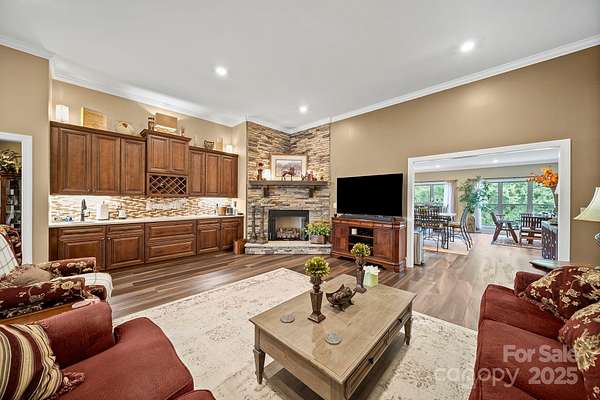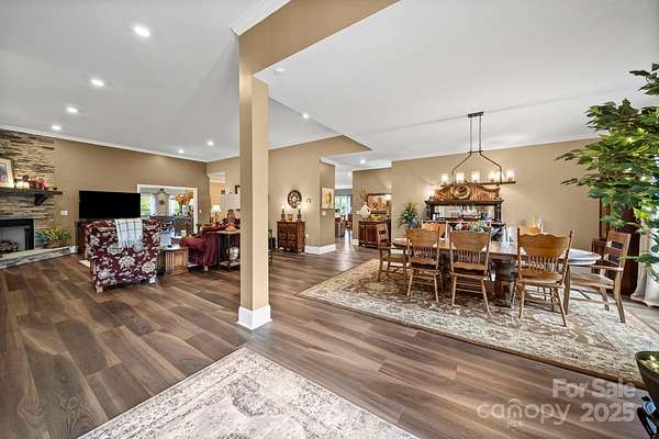 Nestled in the peaceful countryside of New Salem, this custom-built home offers the perfect blend of privacy, luxury, and functionality. Designed with a unique open floor plan, every detail was carefully crafted to create a welcoming atmosphere ideal for everyday living and unforgettable gatherings. The home's front entry welcomes you to the main living area, highlighted by soaring 12-foot ceilings, a spacious formal dining room, and a wet bar with stunning leathered granite-perfect for entertaining family and friends. At the heart of the home lies a chef's kitchen appointed with custom cabinetry, gleaming quartz counters, an expansive island, and a professional-grade Stainless Monogram appliance package-including a double-door wall oven. Accompanying the kitchen are the Breakfast Room, Keeping Room, and Wine Room adding yet another touch of sophistication. For effortless entertaining, a secondary Serving Kitchen with leathered granite counters and custom cabinetry provides the perfect staging area for large events. The Gathering Room serves as the ultimate venue for hosting, where open space and elegant design create an atmosphere of warmth and grandeur. The Sun Room with large windows provides ample natural light and plenty of space for seating around one of the home's 2 gas fireplaces. The luxurious primary suite is a true sanctuary, boasting three oversized walk-in closets, dual vanities, and a spa-inspired bath with a cavernous shower and built-in bench seating. Just down the hall rests a dedicated study (currently styled as a pet room), with exterior access to the fenced pet yard. On the opposite wing, two generously appointed guest rooms with a spacious hall bath offer comfort and privacy, while a private office provides flexible lifestyle options. Outdoor living is equally impressive. The enclosed Porch, framed with Easy Breeze windows and warmed by an Infratech patio heater, offers year-round enjoyment. For alfresco dining and entertaining, a grilling gazebo, patio, and enclosed Pavilion with Easy Breeze windows extend the living experience into the landscape, blending comfort with the natural beauty of the countryside. The Porch and Pavilion are truly extended living areas of the home, offering flexibility and opportunities to connect with the beauty of the landscape. Just across the gravel drive is the detached 3-car garage with full electrical service and individual door openers. Next to the garage is an Amish built shed, also powered and standing at the ready for storage or workshop projects. There are many unique upgrades that went into the home's construction such as reinforced exterior doors, 300 foot deep Artesian Well producing 40 gallons per minute, water softener, 2 electric water heaters, crawlspace ventilation, generator hookup, multiple french drains for rainwater management, and more. Rounding out this country paradise of 3.98 acres is the adjoining land. 40.22 acres of hardwood forest, open pastures, and roughly 10 acres of Pine forest, ready to be harvested. This incredible piece of property is listed for sale as well and is MLS#4303578 at 5401 Army Rd. This home was thoughtfully designed for those who love to host, combining high-end finishes with practical spaces that bring people together. Whether you're preparing a quiet family meal or entertaining a crowd, this countryside retreat delivers a lifestyle of comfort, convenience, and elegance.