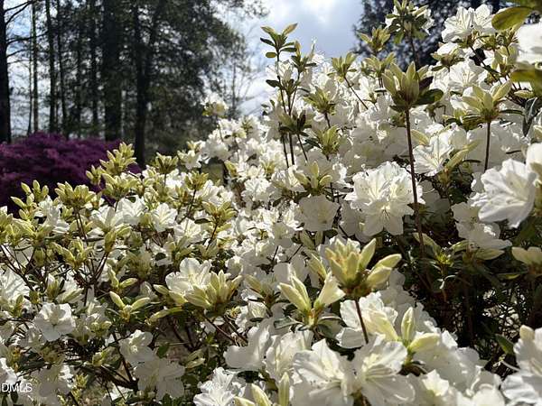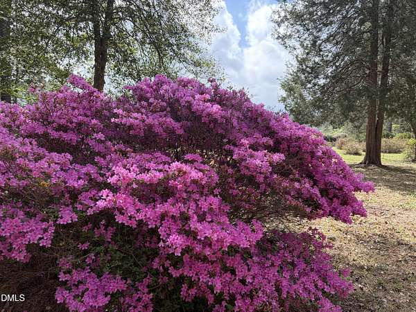 Escape to your own private sanctuary; A rare, lovingly maintained ranch retreat set on over 6 beautiful acres in Chapel Hill, just 15 minutes from UNC. Originally built by the seller's parents, this charming home welcomes you with a long private driveway that leads away from street traffic into a peaceful oasis of natural beauty. Inside, enjoy a thoughtful layout with 2 bedrooms, 2 bathrooms, a spacious living room, an open kitchen and dining area, a pantry, and a huge sunroom filled with natural light: perfect for relaxing while taking in picturesque views of blooming flowers and greenery throughout the seasons. Step outside to flat, open grounds ideal for gardening or enjoying North Carolina sunshine, where the landscape bursts with seasonal color from spring through fall, pink, purple, orange, and white, courtesy of azaleas, gardenias, orchids, jasmine, lilies, just a few of the many flowers that grace the property. Butterflies dance among the blossoms, and you'll also find your own blueberry garden, blooming in spring and yielding sweet berries from April through August. Recent updates include new 2025 hail-resistant white shingles (a Class 4 impact-rated roof that may qualify for insurance premium discounts), improved energy efficiency, as well as a 2024 septic cleaning and drain field expansion. Opportunities like this, acreage, privacy, scenic beauty, and a lovingly maintained home all in one, rarely come along. Tour it before it's gone!