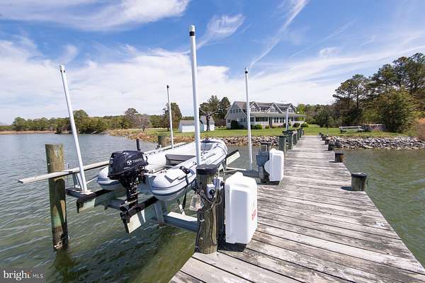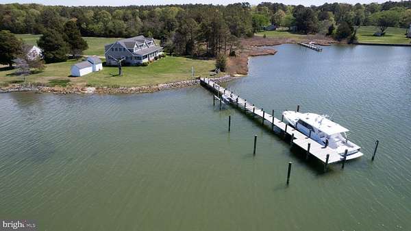 Welcome to a rare waterfront retreat on Hudson Creek offering 30+/- acres of privacy, recreation, and breathtaking natural beauty with easy access to the Chesapeake Bay. With over 1,000+/- linear feet of shoreline and stunning water views throughout, this exceptional property is perfectly suited for boating, fishing, hunting, or simply relaxing and taking in the peaceful surroundings. The property features an extended private pier complete with boat lift, providing direct and convenient water access for all your waterfront activities. A significant bonus is the DU impoundment ideal for waterfowl habitat. The home offers 4 spacious bedrooms and 3 full baths and 1 half bath, designed to accommodate both comfortable everyday living and entertaining. A massive great room and dining area serve as the centerpiece of the home, highlighted by an open balcony that surrounds the space and creates a dramatic, airy feel. Dual stairways provide access to the upper level, adding both functionality and architectural appeal and water views. The eat-in kitchen includes a center island and stainless steel appliances, ideal for gatherings and casual dining. A bright and inviting sun porch offers the perfect place to enjoy morning coffee or unwind while overlooking the water. Additional features include a laundry/utility area, welcoming front porch, and a rear porch that further captures the serene water views. Outside, you'll find a storage shed and a detached two-car garage, offering ample space for equipment, vehicles, and recreational gear. Whether you're seeking a private waterfront residence, a weekend escape, or a recreational haven (boating, kayaking, fishing and hunting), this unique property delivers unmatched space, versatility, and waterfront living.