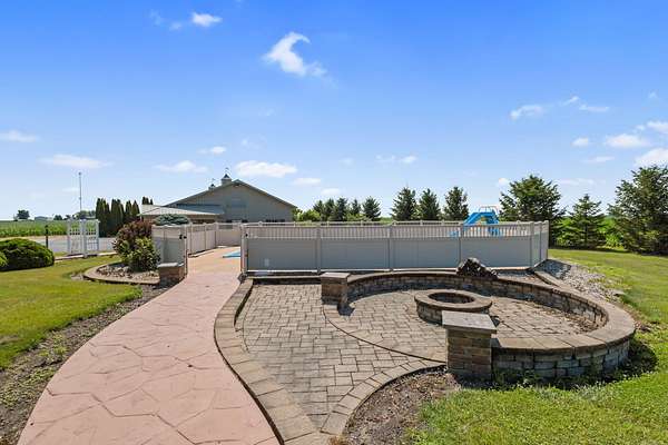 Embrace the ultimate in luxury with this exquisite resort-style living experience in the serene rural Midwest! This remarkable custom-built Estate is truly one of a kind, offering the incredible potential for seven bedrooms and a wealth of amenities that elevate it to the next level.The property boasts meticulously professional landscaping, featuring custom-stamped concrete and striking entryways that make a lasting impression. Inside, the main level showcases spacious and elegant living areas, including a private primary bedroom suite complete with a generous custom walk-in closet, a secondary dressing area, and beautifully appointed custom bathrooms.The grand great room is a masterpiece, adorned with a Fireplace, intricate custom trim and expansive windows that create a bright, inviting atmosphere, seamlessly connecting to the kitchen and dining room. Enjoy easy access to the rear sunroom and an enormous deck, designed for outdoor enjoyment with an inground heated pool, fire pit, and gazebo--perfect for both relaxation and entertaining.Two additional bedrooms on the main level provide exclusive access to a private covered porch, connected by a stylish Jack and Jill bathroom. The huge upper-level bonus room adds versatility, while the finished walk-out basement offers complete living quarters with over 3,000 square feet of additional luxury.Step outside to a backyard oasis, designed for both privacy and entertainment. The detached building includes a finished space with a kitchenette and a 3/4 bathroom, alongside a spacious workshop capable of accommodating more than six vehicles, plus an additional unfinished area on the east side. An attached two-car garage with a sleek epoxy floor completes this exceptional property.This estate is truly a gem, and an itemized list of its impressive features is available for your review. Don't miss the opportunity to experience this unparalleled living space!