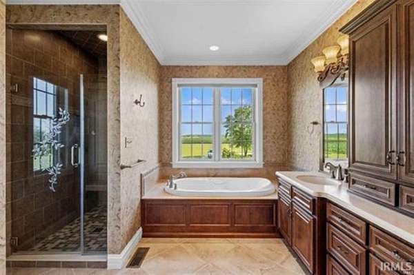 Embrace the ultimate in luxury with this exquisite resort-style living experience in the serene rural Midwest! This remarkable custom-built Estate is truly one of a kind, offering the incredible potential for seven bedrooms and a wealth of amenities that elevate it to the next level. The property boasts meticulously professional landscaping, featuring custom-stamped concrete and striking entryways that make a lasting impression. Inside, the main level showcases spacious and elegant living areas, including a private primary bedroom suite complete with a generous custom walk-in closet, a secondary dressing area, and beautifully appointed custom bathrooms. The grand great room is a masterpiece, adorned with a Fireplace, intricate custom trim and expansive windows that create a bright, inviting atmosphere, seamlessly connecting to the kitchen and dining room. Enjoy easy access to the rear sunroom and an enormous deck, designed for outdoor enjoyment with an inground heated pool, fire pit, and gazebo--perfect for both relaxation and entertaining. Two additional bedrooms on the main level provide convenient access to a private covered porch, connected by a stylish Jack and Jill bathroom. The huge upper-level bonus room adds versatility, while the finished walk-out basement offers complete living quarters with over 3,000 square feet of additional luxury. Step outside to a backyard oasis, designed for both privacy and entertainment. The detached building includes a finished space with a kitchenette and a 3/4 bathroom, alongside a spacious workshop capable of accommodating more than six vehicles, plus an additional unfinished area on the east side. An attached two-car garage with a sleek epoxy floor completes this exceptional property. This estate is truly a gem, and an itemized list of its impressive features is available for your review. Don't miss the opportunity to experience this unparalleled living space!