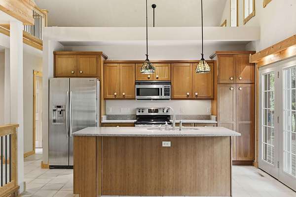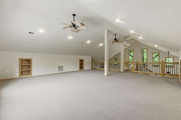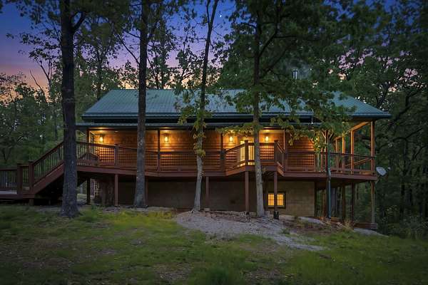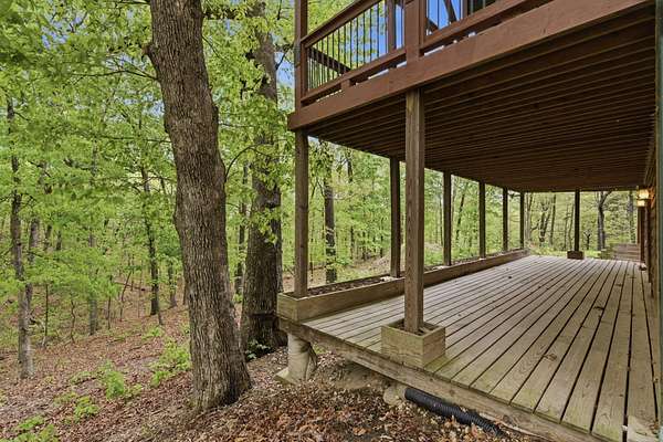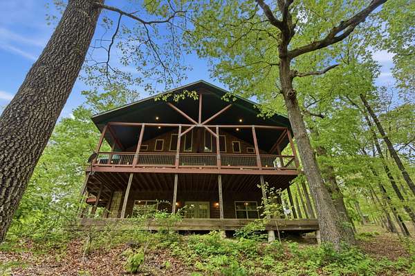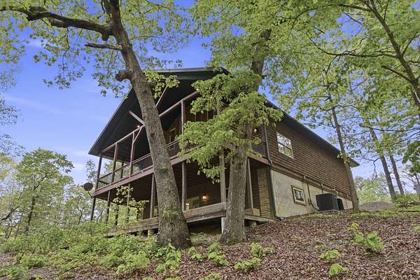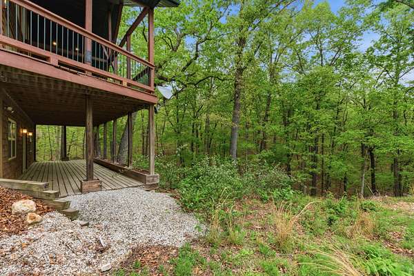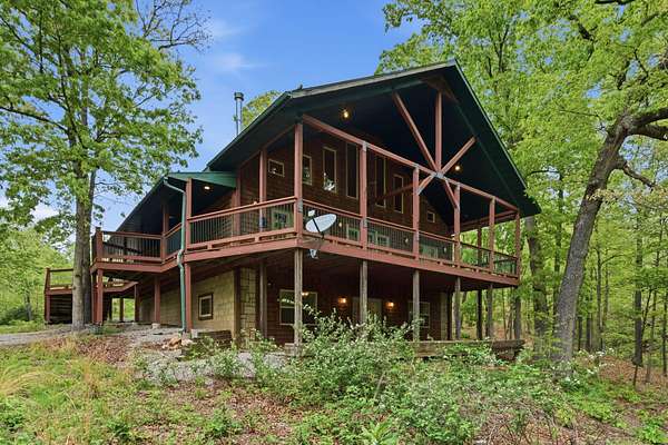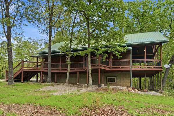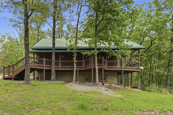 Tucked behind TWO GATED ENTRIES off State Hwy JJ, this private 3-BEDROOM, 2-BATH, 2-CAR GARAGE home sits on 23 ACRES of beautiful, usable land, offering the perfect blend of SECLUSION, RECREATION, AND EVERYDAY COMFORT. The setting is stunning and park-like, with acreage providing EXCELLENT HUNTING FOR DEER AND TURKEY, wooded terrain, a serene creek, and even wild blackberries--creating a true OZARKS RETREAT.This ENERGY-EFFICIENT three-level home features FOAM INSULATION and a DUAL-ZONE HVAC SYSTEM for year-round comfort. Inside is an inviting OPEN-CONCEPT LIVING, KITCHEN, AND DINING AREA with VAULTED CEILINGS. The kitchen offers GRANITE COUNTERTOPS, STAINLESS STEEL APPLIANCES, and great flow for entertaining. A WOOD-BURNING STOVE adds warmth and charm.Enjoy outdoor living with a COVERED WRAP-AROUND PORCH, VAULTED BACK PORCH, plus UPPER AND LOWER DECKS overlooking the private setting--perfect for relaxing or entertaining.Upstairs features a LOFT BONUS ROOM, while the lower level includes TWO BEDROOMS, FULL BATH, AND SECOND LIVING AREA, ideal for guests or MULTI-GENERATIONAL LIVING.Additional highlights include a PRIVATE WELL AND SEPTIC, OVERSIZED GARAGE WITH WORKSPACE, and room for SHOPS, RVS, OR EQUIPMENT--all with NO HOA RESTRICTIONS.Conveniently located near TEXPLEX PARK, and just minutes to BIG CEDAR, TOP OF THE ROCK, AND BRANSON AIRPORT.If you're looking for ACREAGE, PRIVACY, AND A MOVE-IN READY HOME WITH QUALITY FINISHES, this one checks every box.