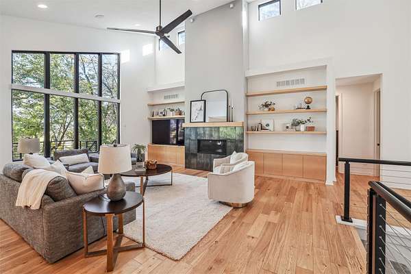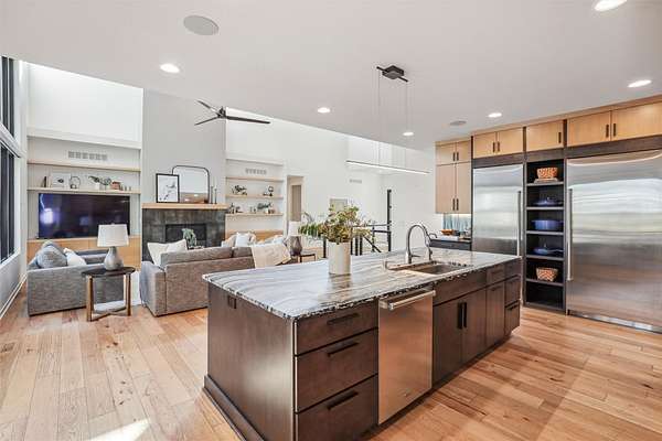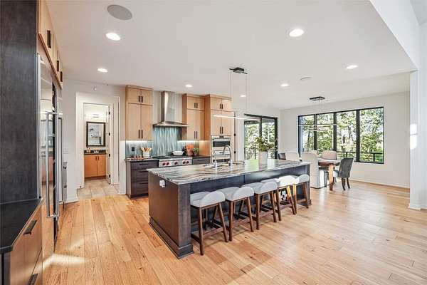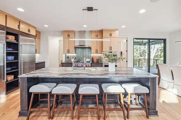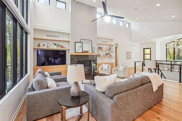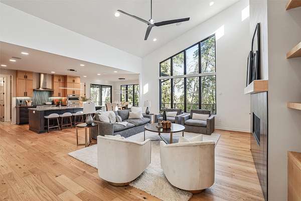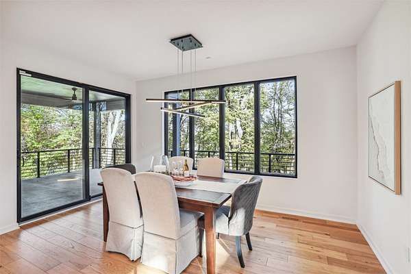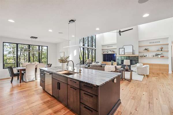 Discover a perfect blend of privacy and natural beauty at this modern retreat in West Des Moines! The sale includes 3.5 acres of lush timber, creating a serene environment. This beautiful Denton Homes resale features 5 spacious bedrooms, 5 bathrooms, and over 4,200 finished square feet. The heart of the home is a gourmet chef's kitchen with top-of-the-line Sub-Zero and Wolf appliances. The large quartz island connects to the dining and family areas, ideal for gatherings. High vaulted ceilings and floor-to-ceiling windows flood the main floor with light, showcasing breathtaking views of the surrounding timber. Located in the exclusive Maffitt Ridge development, across from the 1,500-acre Dale Maffitt Reservoir and Park, enjoy fishing, hiking, and kayaking while benefiting from WDM public services and metro proximity.